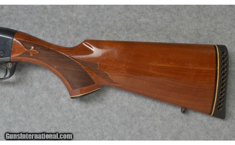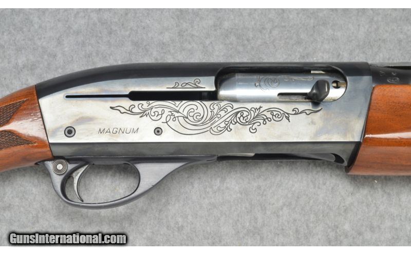 Description: This Remington 1100 Magnum is in excellent condition with 30 inch blue vent rid barrel that has a clean bright bore. The stock is excellent condition with a few very minor field marks of the left side. The metal is in excellent condition with no visible field marks. Over all this is a very good looking shotgun that would be great for shoot trap or to take hunting. SOLD Manufacturer: 1967 Caliber Info: 12 Ga. Chambers: Semi auto with a 2 3/4 inch chamber Metal Condition: Excellent. Wood Condition: Excellent. Bore Condition: Clean and bright. Barrels: 30 inch blue vent rib barrel. Triggers: Single blue trigger. Stock: Walnut stock with a black rubber grip plate, sling stud and checkering on the pistol grip. Stock Dimensions: 13 3/4 inch LOP. Fore End: Matching walnut fore end with checkering. Butt Pad: Black rubber butt pad. Weight: 8 Lbs. 4 Oz's. Sights: Single silver bead sight. Chokes: Full fixed choke. Item Location: Sun Prairie, WI |