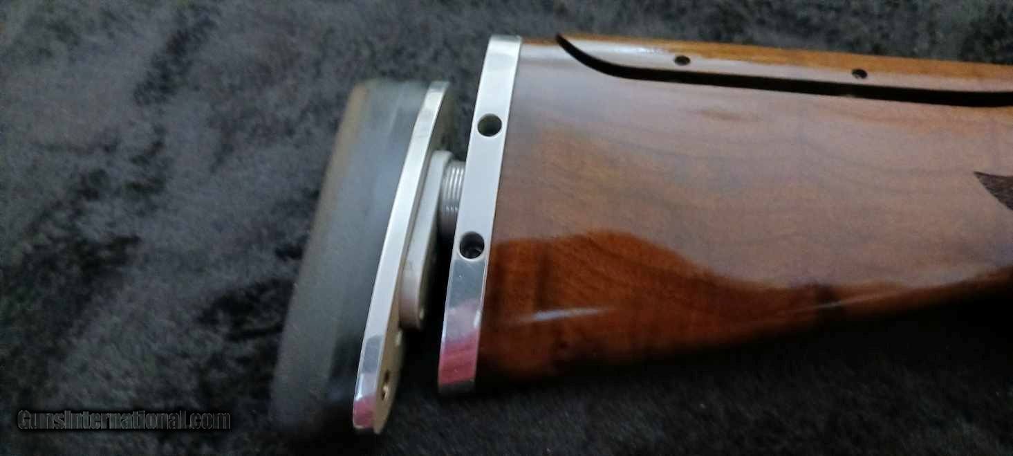Description: Clay Sports International Consultants - Call for Best Pricing and Additional Customization Phone: 321-259-7365 DockwillerGunsmiths Special Options and Pricing Available This Remington 1100 Tournament Grade 410 Skeet shotgun is as Handsome as it is Functional with premier grade wood and an all metal coating of polished chrome for smooth action and extended durability. Not visible is the competition trigger job and internal parts QC at the shop. 100% Hard Chrome Finish Parts Included Dockwiller Shop Hand Fitted Adjustable Comb and Adjustable Butt/Pad with Forearm Balance Weight This Ultra 410 has an adjustable comb with numerous settings and an adjustable Pad and Butt Plate with unlimited fitting selections to insure a comfortable setup for all shooter’s Physiology. This shotgun is 100% Pristine and looks very impressive with the polished chrome semi-gloss Finish. With its adjustment versatility and choking the shotgun is perfect, of course, for skeet and will work well for sporting clays and regulated five-stand. This shotgun will provide enjoyment for many years and is available now at a very reasonable price. We always perform a pre-delivery Quality Control check to ensure that you shotgun is delivered in good working condition. To insure that your shot is delivered safely, we provide a free 2” Padded Military Cordura Case. Please feel free to contact us at 321-259-7365 for further information or to place your order. We look forward to working with you and appreciate your business. Sincerely, Clay Sports International Consultants - Available to assist you. SOLD Shotgun Gauge: .410 Gauge Manufacturer: Remington Model: 1100 Tournament Skeet Bore: Excellent Ejectors: Automatic Condition: Excellent Metal Condition: Excellent Wood Condition: Excellent Bore Condition: Excellent Barrels: 26" Skeet Barrel Type: Single Ribbed Skeet Action: Semi-auto Triggers: Custom Tuned Stock: Premium Adjustable Stock Dimensions: Adjustable Stock Drop: Adjustable Stock Comb: Adjustable Stock Heel: Adjustable Stock Cast: Adjustable Fore End: Weighted Custom Butt Pad: Adjustable Kickeez LOP: Adjustable Rib: Vented Skeet Finish: Semi-Gloss Lacquer Extras: Adj. Comb, Pad, Weights Case: Military Cordura Item Location: Florida |