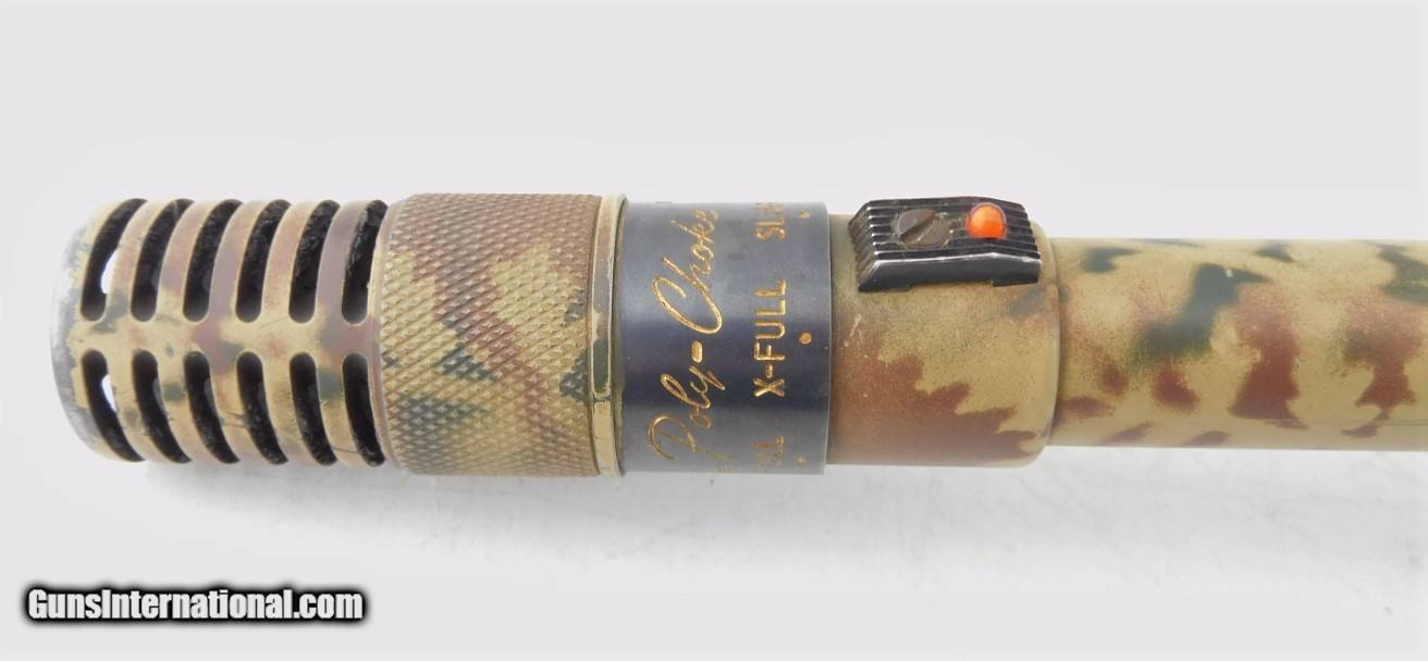 Description: Remington 1100 Semi-Auto 16 GA, 26" bbl, shiny smooth bore, custom camouflage finish, red bead front sight, adjustable Poly-Chole, and Pachmayr Gun Works vented recoil pad. Add 3% for Credit Card Shipping $40.00 in the 48 contiguous United States SOLD |