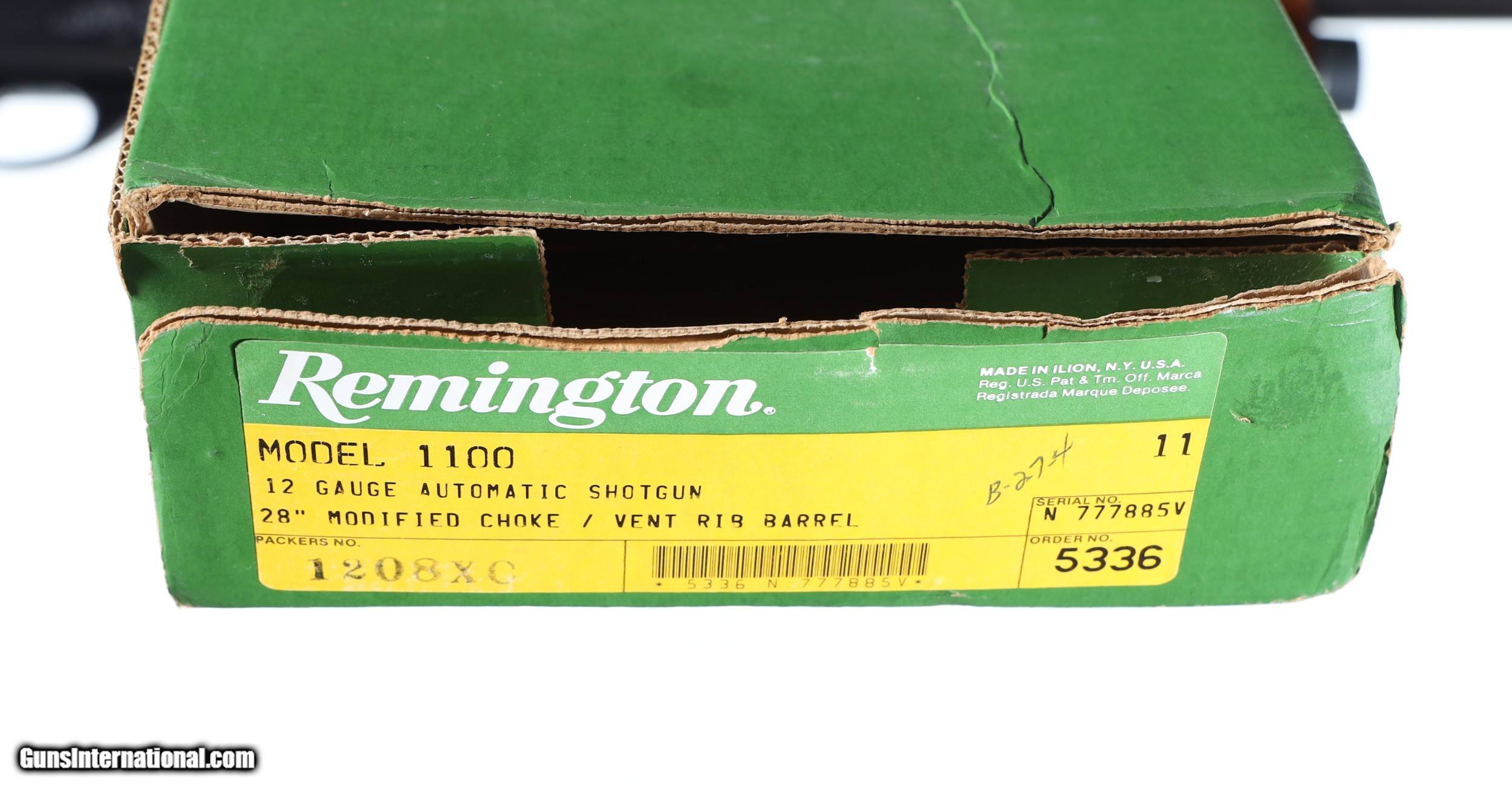 Description: Excellent plus overall condition with matching factory box. 2 3/4" chamber with a 14 1/4" LOP. Choked mod. • Free Shipping, No Credit Card Fees. • Lay-a-way available for this firearm. • 1/3 Down, a 1/3 in 30 Days 1/3 in 60 Days. SOLD Manufacturer: Remington Model: 1100 Serial Number: N777885V Barrel Length: 28 |