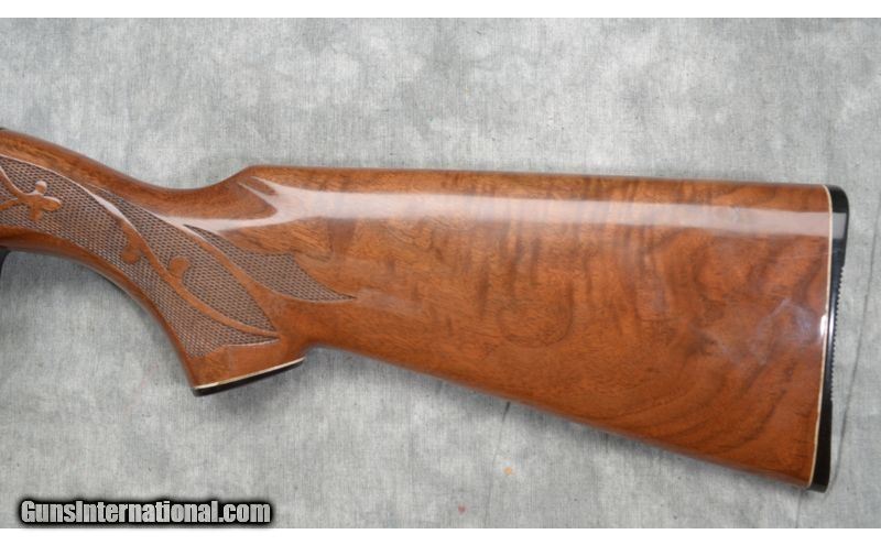 Description: A-grade wood and special measurements as indicated. SOLD Caliber Info: 12 Gauge Chambers: 2 - 3/4 Inch Metal Condition: Very good. Several vertical scratches on the receiver, left side, and a little bluing loss around the muzzle. Wood Condition: Excellent. You'll have to look hard for any defects. Bore Condition: Bright and shiny Barrels: 25 Inch Stock: Checkered high grade walnut pistol grip Stock Dimensions: 14 - Inch LOP, Drop at Mid-comb: 1.5 Inches; Drop at Heel: 2 inches Fore End: Matching checked walnut Butt Pad: Black plate Weight: 8 lb. - 2 oz. Sights: Ventilated rib with White forebead and silver mid-bead Chokes: Fixed Skeet Item Location: Rogers,, MN |