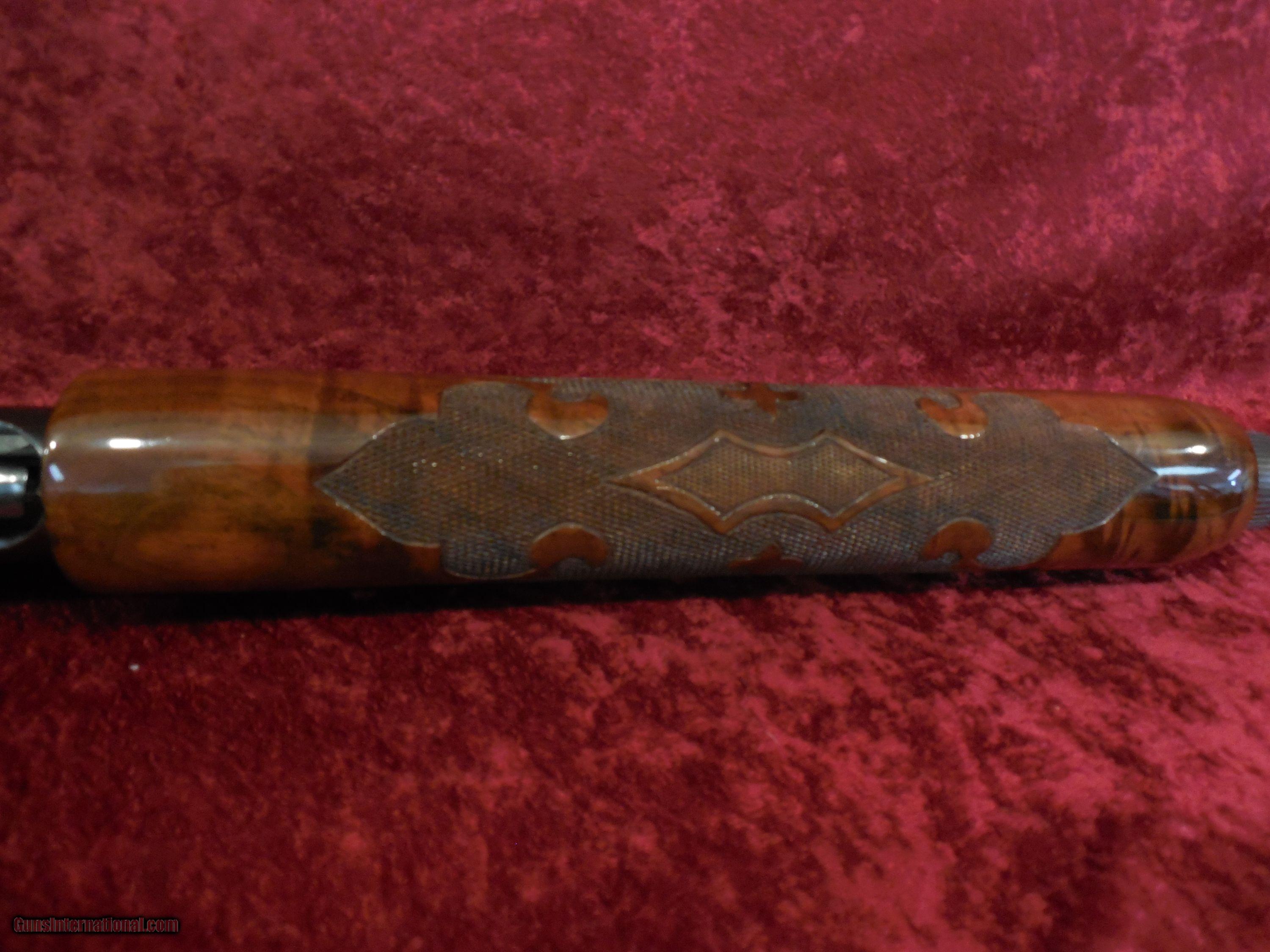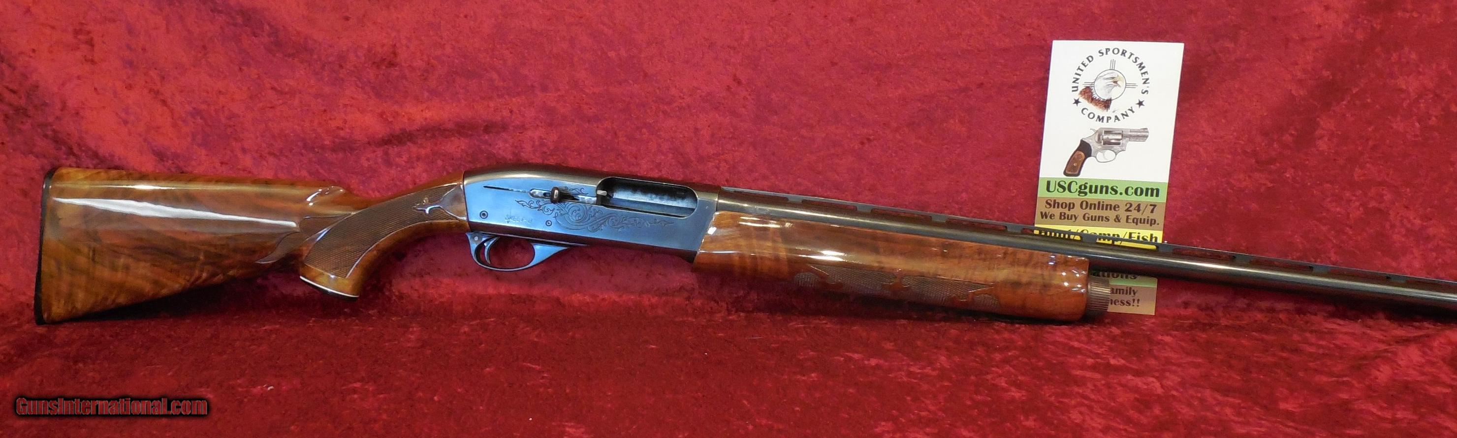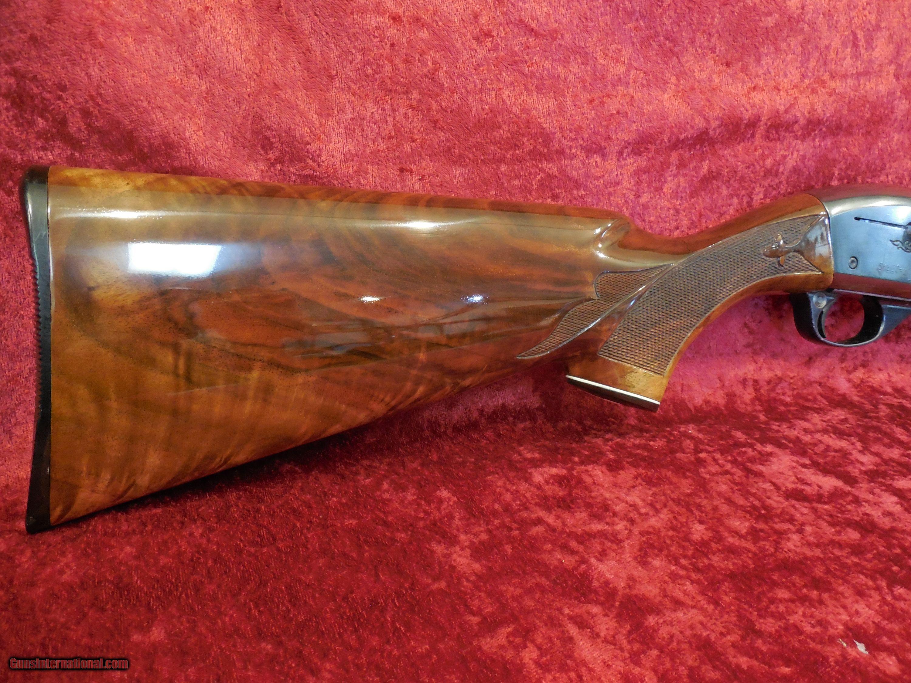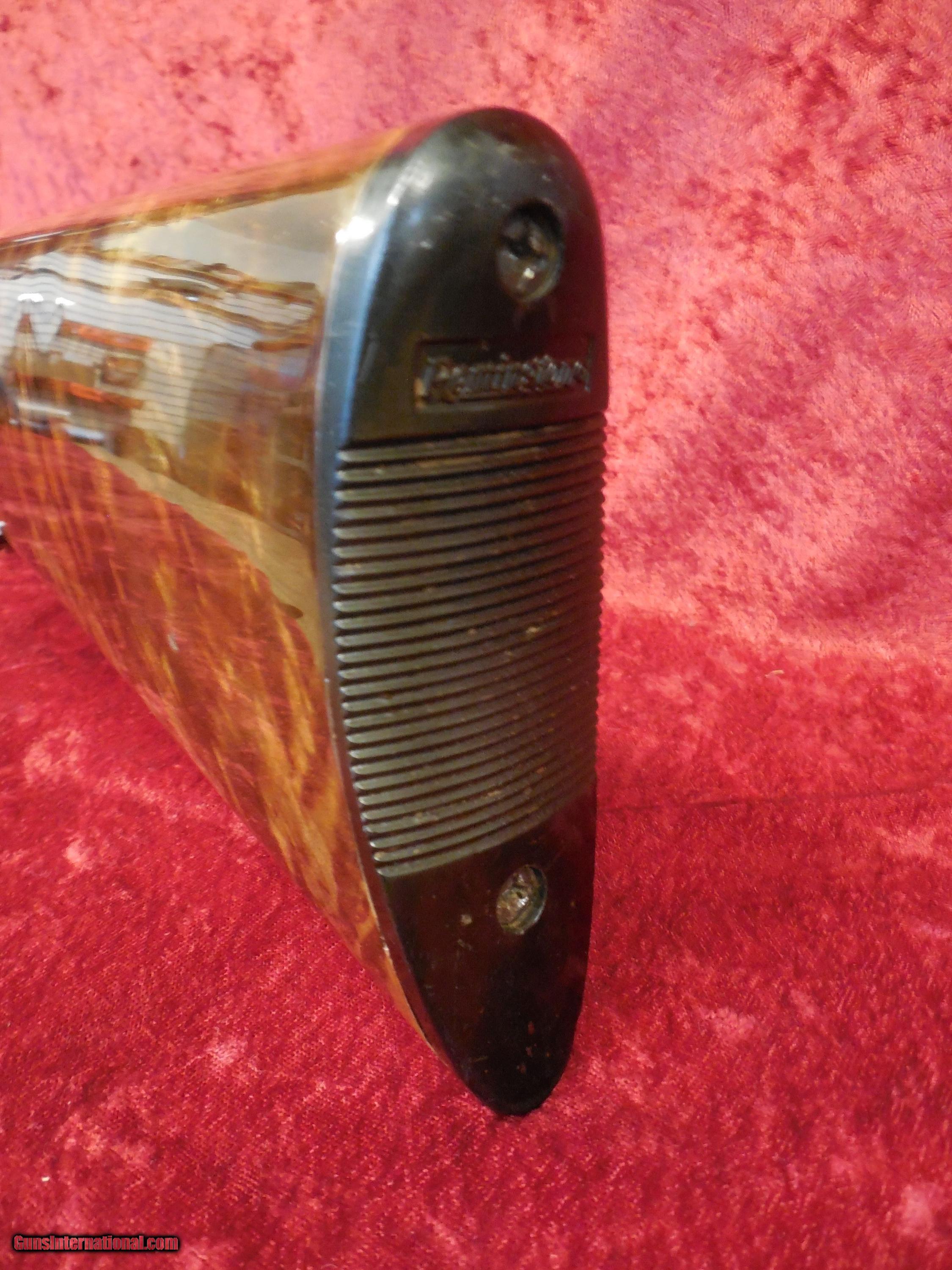 Description: Remington 1100 Skeet B semi-auto 12 gauge 26" VR bbl Beautiful Burl Walnut Stock & Matching Forearm!! Here is a used Remington 1100 stamped Skeet B with some exceptional burl walnut stock and matching forearm. You don't see them like this all the time. Stock has beautiful burl walnut on both side with matching forearm with high gloss finish and Rem plastic butt plate. Chamber: 2 3/4", Fixed Cyc. choke--barrel is stamped skeet with vent rib and two beads. Overall wood is 95%+, Metal is 90% with bluing wear on right side of receiver, nicks and scratches on receiver, barrel shows bluing wear at the muzzle with bright shiny bore. Please see pictures.
