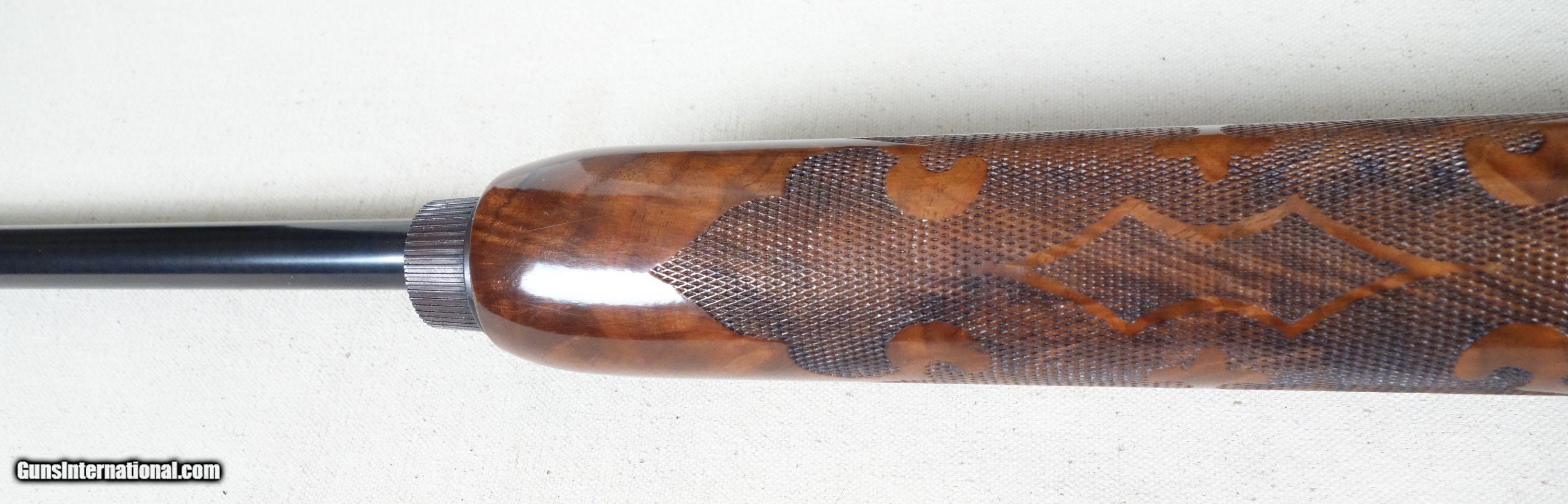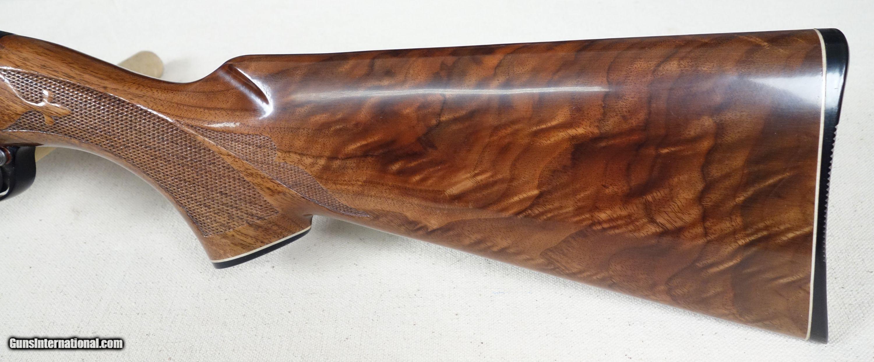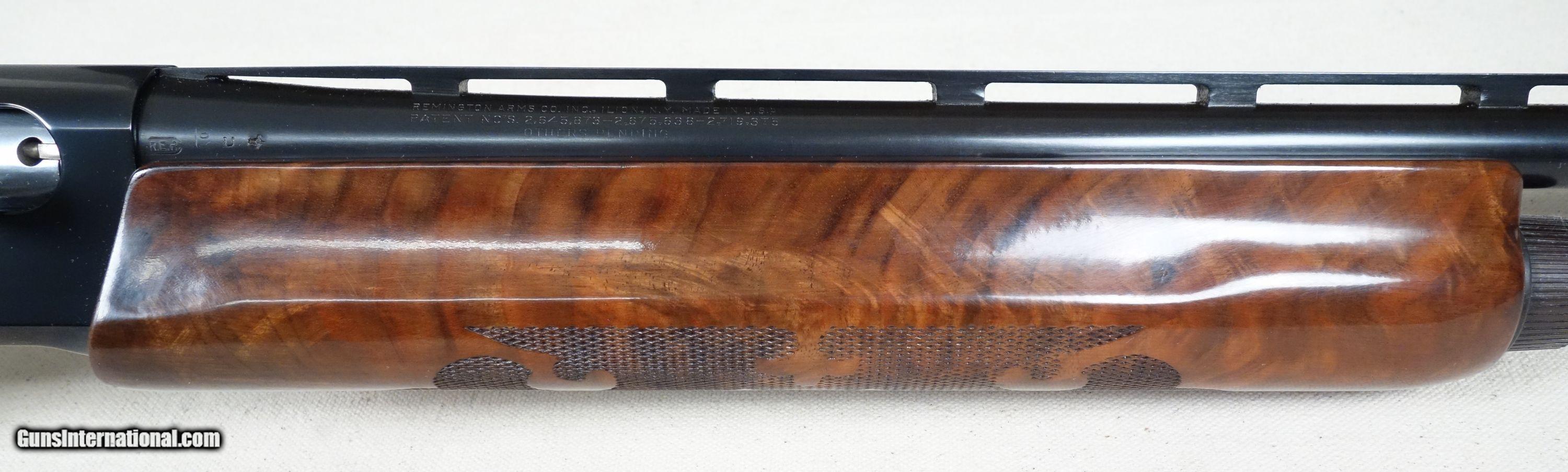 Description: Exceptional wood grain on this beautiful and scarce Remington 1100 Skeet B grade 20 gauge semi automatic shotgun. It wears a 26" ventilated rib barrel with skeet choke and 2 3/4" chamber. S/N 514***X Mfg. 1968. This shotgun is in virtually as new condition and can not be upgraded. Please click on the top blue "see all listings" button for more exceptional vintage collector arms to be added daily. SOLD Curio/Relic: Yes |