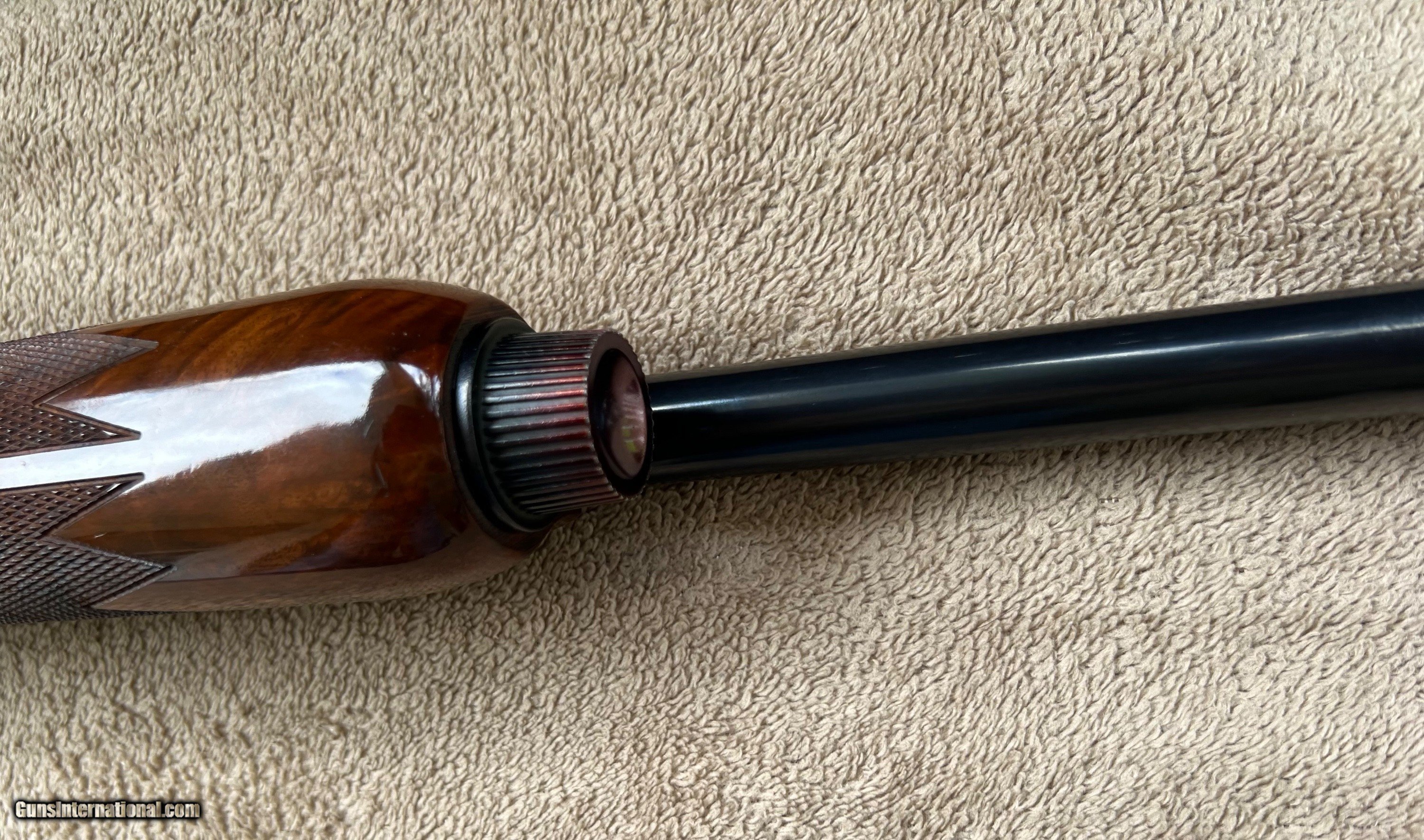 Description: Remington 1100 LT-20 Skeet T. 20 gauge 25 1/2" barrel wirh fixed skeet choke. Has higher grade wood with nice figure. Checkering is nice and crisp, bluing is excellent. Overall in excellent shape. Has a few handlling marks. Mainly just the one on the butt plate. But you would be hard pressed to find one in nicer shape!!!!! $60 shipping SOLD Shotgun Gauge: 20 Gauge Manufacturer: Remingron Model: 1100 Barrel Length: 25 1/2” Chambers: 2 3/4” Condition: Excellent Metal Condition: Excellent Wood Condition: Excellent Bore Condition: Mint |