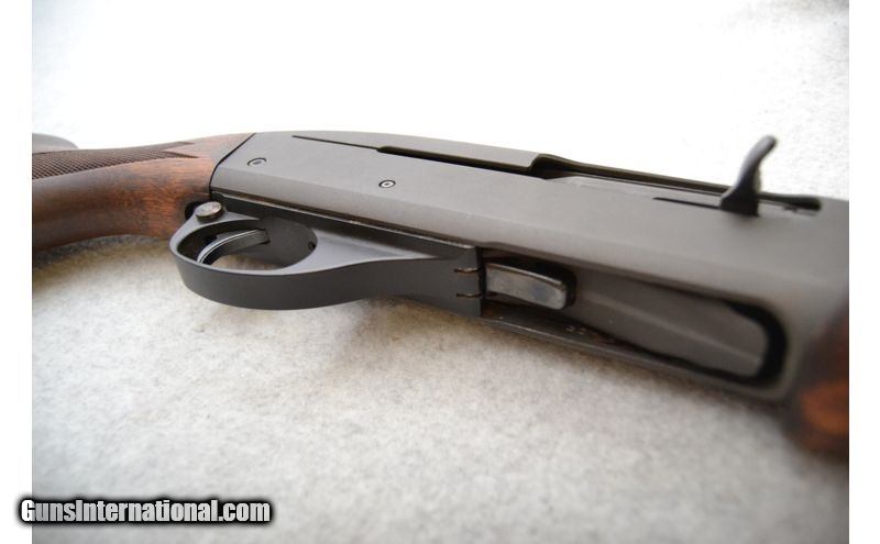 Description: Fair to good condition. The metal has some handling marks and there is some minor surface rust abound the rear sight. The finish on the stock is mediocre at best. Bore is in great shape despite some stubborn fouling. 12 Gauge SOLD Chambers: Semi-automatic fed from a tubular magazine and chambering up to 2¾" shells. Metal Condition: Good. Wood Condition: Fair to good. Bore Condition: Excellent. Barrels: 21" Matte black smooth bore slug. Triggers: Narrow blued metal with smooth surface. Stock Dimensions: 14" LOP Fore End: Refinished hardwood with bottom panel embossed checkering. Butt Pad: Ventilated black rubber pad. Weight: 8 lbs. Sights: Rifle style with front blade and adjustable ramp rear. Chokes: None. Item Location: Green Bay |