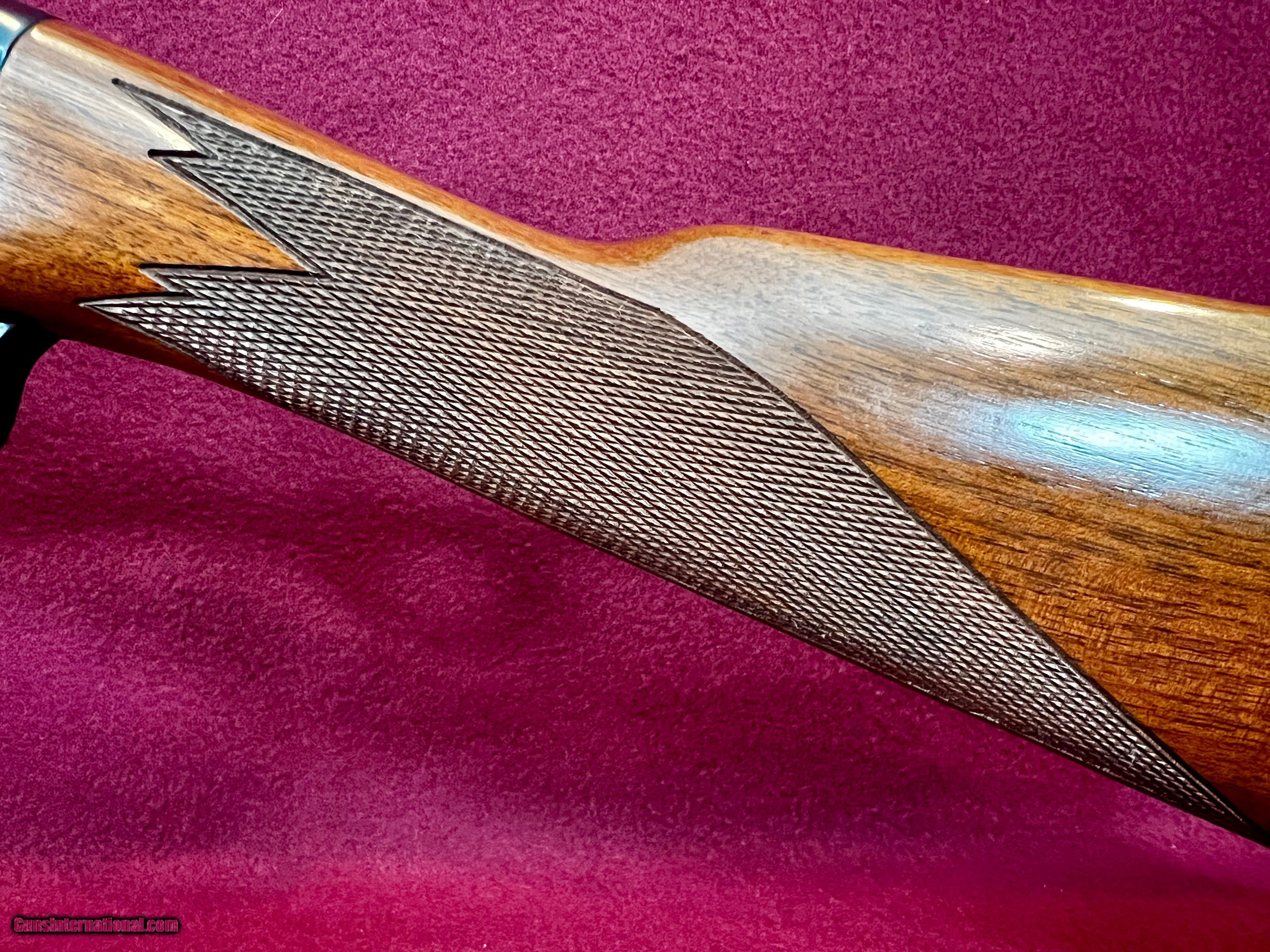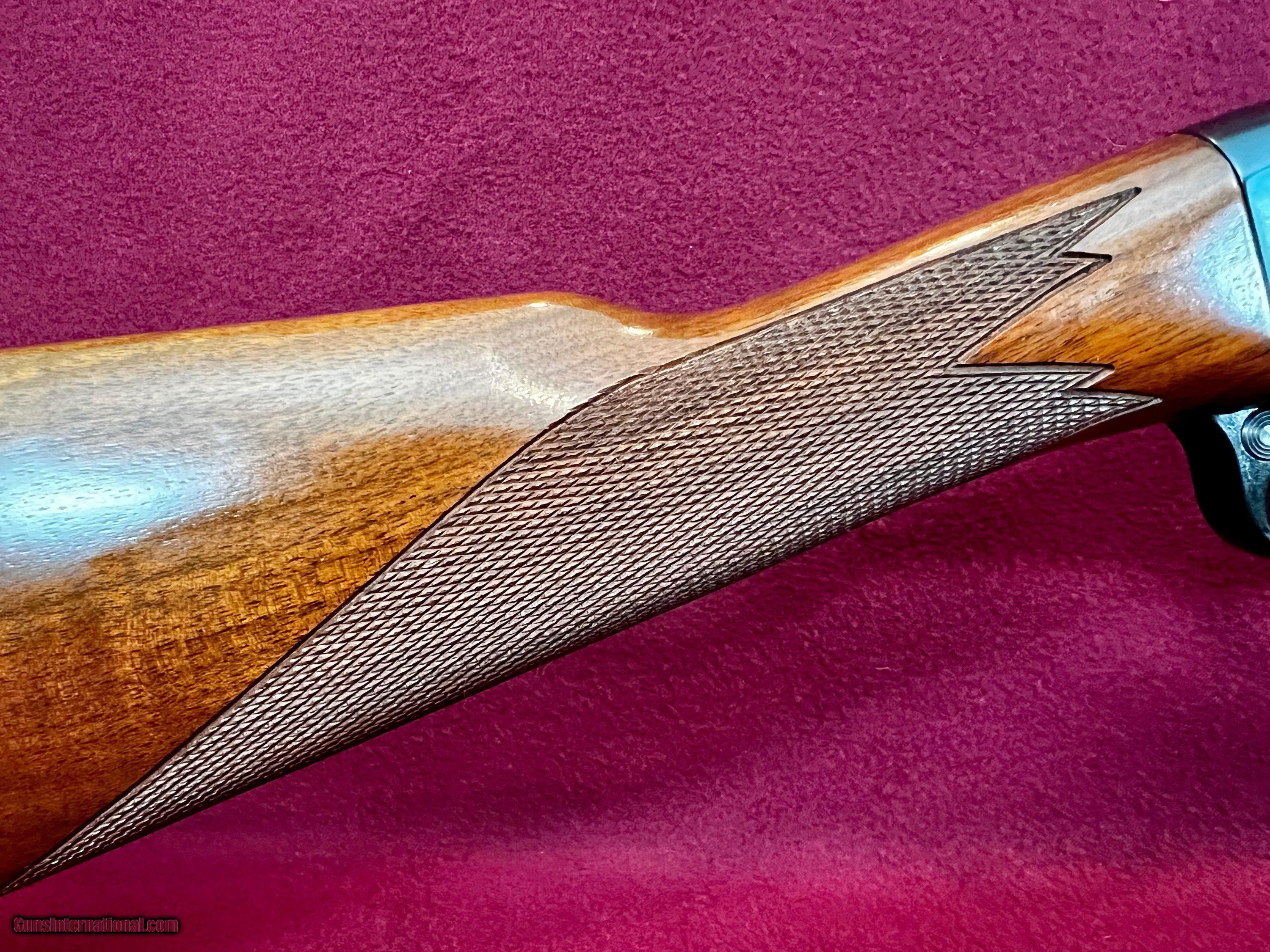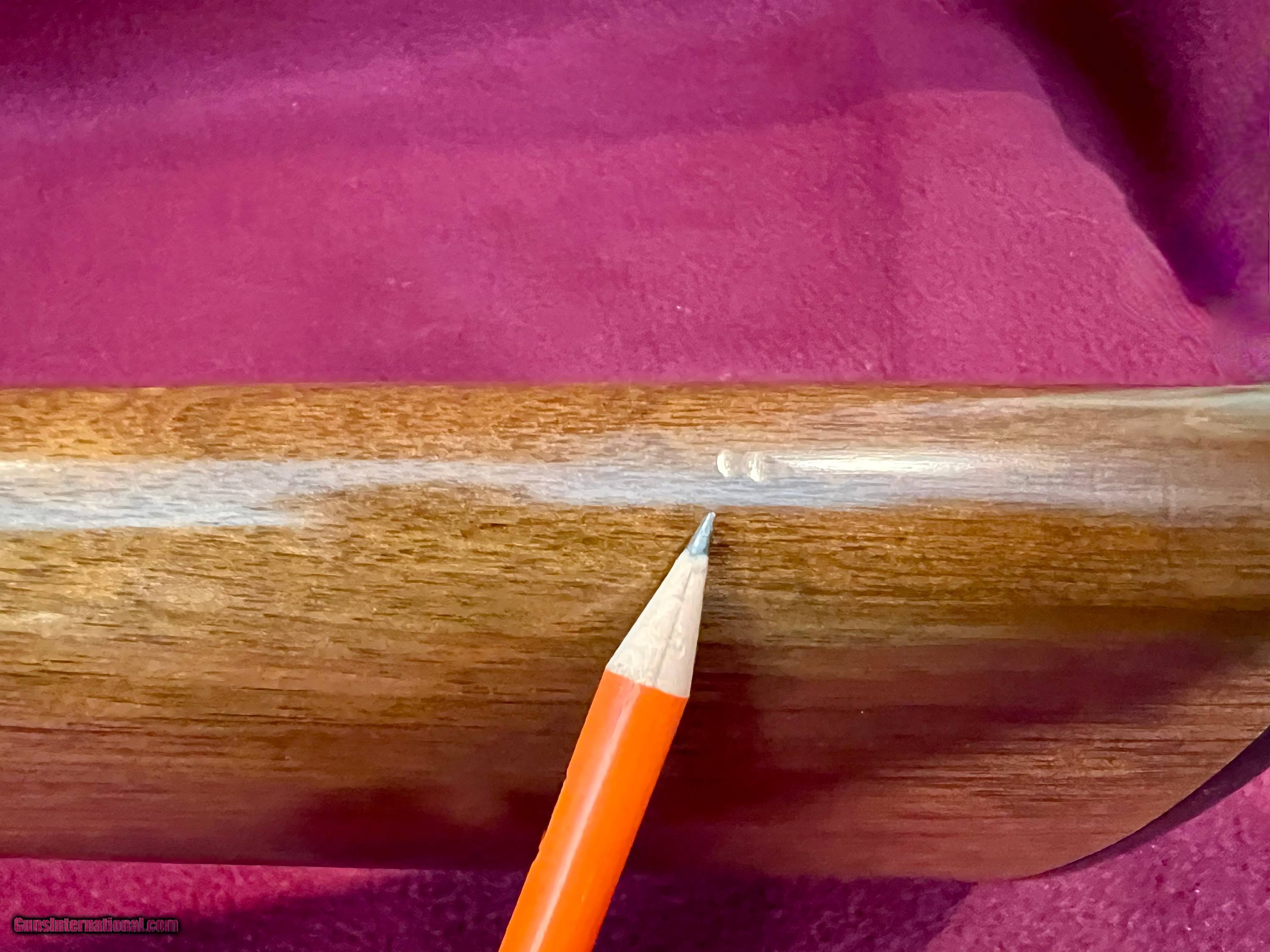 Description: I have for sale my all time favorite Reminton 1100 model the Special Field in the great 20 gauge version. These are great upland guns that carry and point perfectly for most users. This particular gun has 20 gauge 21 inch barrels with screw in chokes, making this a very versatile upland gun. The gun comes with three choke tubes, skeet, Improved cylinder, and modified. The straight english style stock has dimensions of 1 1/2 X 2 1/2 X 14 1/4 over the original Remington butt plate. This gun is in all original condition and I believe it is unfired. There are absolutely no signs the gun has had a shell through it since leaving the factory. The stock is just about perfect condition having only one very small ding on the top of the stock. Other that that I didn't find any other marks. This guns were normally well used because they are so easy to carry afield and point so well. It is very unusual to find one in this condiiton. Price of the gun is $2300 plus $50 shipping to your FFL. As always there is a three day non-firing inspection period with the buyer paying shipping charges if returned. Sorry there is no factory box for this gun. SOLD Shotgun Gauge: 20 Gauge Manufacturer: Remington Model: 1100 Special Field Barrel Length: 21 Chambers: 2 3/4 Condition: Excellent as New Metal Condition: Excellent / As New Wood Condition: Excellent / As New Bore Condition: Perfect Action: Semi Auto Stock Comb: 1 1/2 Stock Heel: 2 1/2 Fore End: Field Style Butt Pad: Factory Butt Plate LOP: 14 1//4 Rib: Vent Rib Finish: Factory Weight: 6-12 Sights: Front and mid bead Chokes: Skeet, IC, Mod |