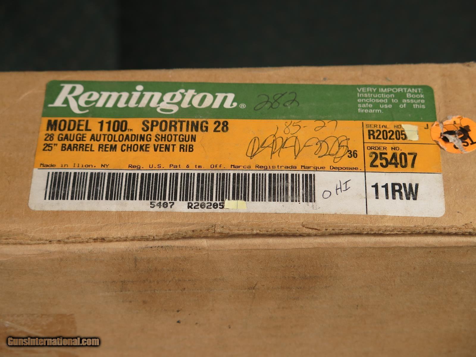 Description: Remington 1100 Sporting 28ga. 25 inch vent rib barrel. 4 Briley extended screw chokes. 14 1/8 LOP. 98% condition with original box and papers. We have over 45 years in business, and not only do we buy guns, but we accept collections (and single/multiple guns) on consignment. SOLD Shotgun Gauge: 28 Gauge |