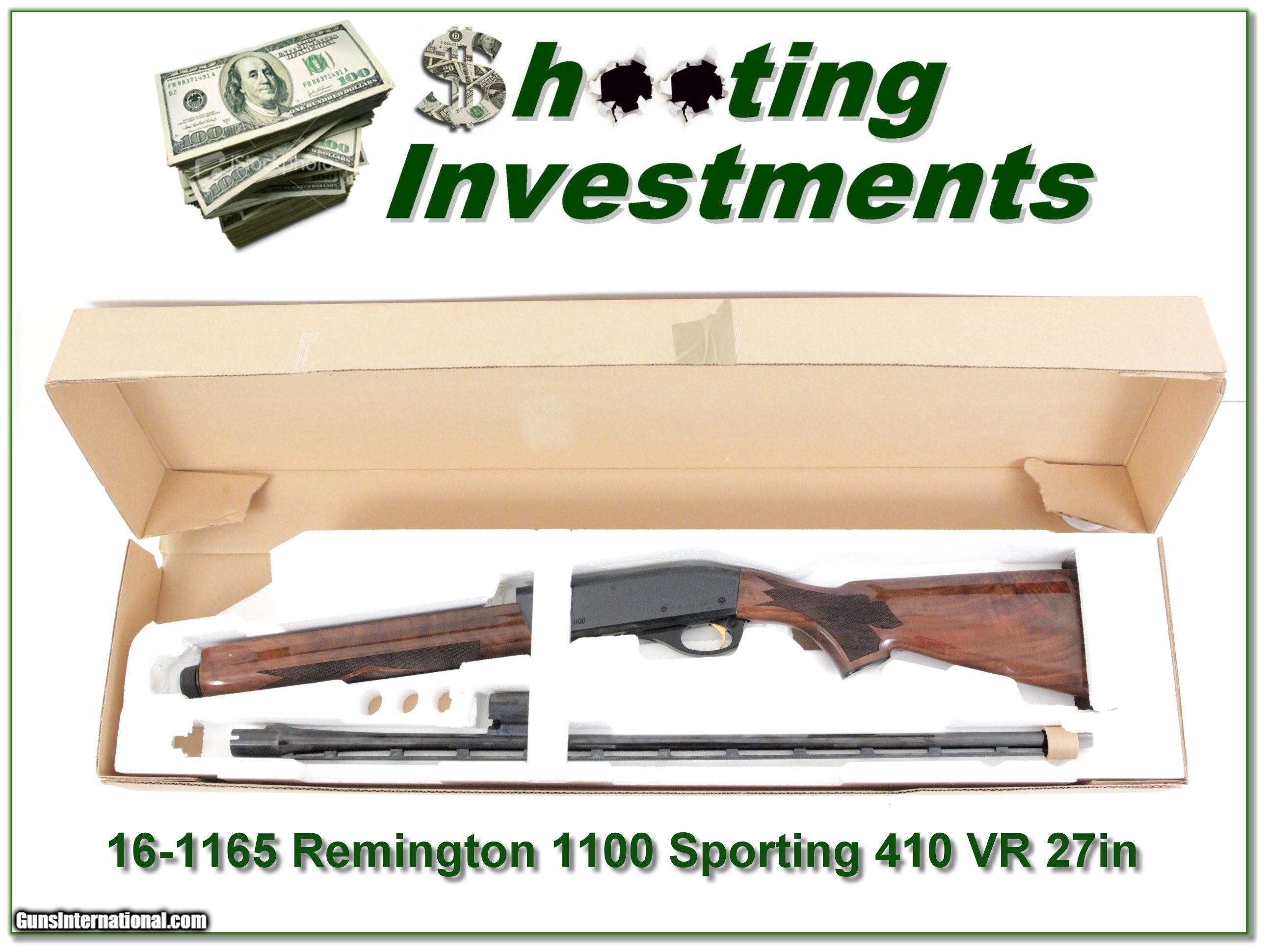 Description: This is a Remington 1100 Sporting in 410 Bore. I believe unfired with no marks I see. It comes as shown in original box with 1 choke tube. It has a Vent Rib 27in barrel. I am selling it on consignment and as such lay-a-way can’t be used. It does of course have the standard 3 day inspection. Shipping and insurance is $35 or $15 more if you want it shipped in a new Plano hard case. Please email me with any questions or larger pictures. (I now consign quality firearms only 10%! Let me know if you have any you would like to sell!) [16-1165] Payment: Payment is by Money Order, Cashiers Check or Personal Check. I can now also accept MasterCard and Visa with a 3% convenience fee. PayPal can be used for some items but never firearms. Please let us know if you would like to pay via PayPal. Shipping: The shipping charge will be listed in each description. It is $35 for most guns. Some heavy guns or those insured for over $2000 will be higher. Shipments to Alaska and Hawaii are higher because air shipment is required. Most firearms are shipped within 5 days of receipt of payment. We prefer shipping at the beginning of the week to avoid firearms in transit over weekends. We package all shipments carefully and insure them for the full purchase price, rounded up to the next $100. In the unlikely event that damage occurs, it is important that you save all packaging material for the claims process. Optics are shipped Priority Mail and most other non-firearm shipments are shipped First Class. Returns: Our return policy is simple. If for any reason you are not pleased with your purchase, you may return your item for a refund. The only exception is ammunition, it cannot be returned. It is important to us that you are happy. Guns cannot be fired or dissembled before returning them and must be returned in the same condition as received. Notification of a return must occur with-in 3 days of receipt at your dealer. Shipping, convenience and dealer fees are not refundable and are the responsibility of the buyer. Lay-a-way: If needed, we offer a 60 day lay-a-way option on most firearms. It is 1/3 now, 1/3 in 30 days and 1/3 in 60 days. Lay-a-way firearm sales are final. Consigning your firearms with Shooting Investments: We will help you get top dollar for your firearms. While most local guns shops charge 20% or more, our fee is only 10% with a minimum of $50. At your local gun shop it might take months to sell. Selling on-line provides instant access to thousands of interested buyers. You won’t find any other on-line dealer willing to sell your firearms for only 10% or listing every gun on 4 separate s. Selling through an House typically costs the seller 15% and the buyer an addition 15% (so 30%) and you have to wait several months to sell and longer to receive funds. If properly priced, we will sell your firearms in a week or two. Send us an email or give us a call and we’ll explain how easy it is for you to get top dollar. Trading: We collect guns and usually just trade for guns we want to add to our collections. We often sell guns for others wanting to purchase one of ours. We find this the most fair to both of us. Our Commission is only 10% and we hold the gun you want until yours sells. Please contact us if you want to sell one of yours to buy one of ours. Help for California Buyers: We are happy to ship to California. It is the buyer’s responsibility to make sure any item you buy is legal in your state. We are also happy to help with your purchase of a firearm from someone other than us. If you see a gun you would like to buy but the seller can’t or won’t ship to California we can help. You buy the gun and have it shipped to us. We’ll then ship it to your California dealer. The cost for this service is only $30 + shipping. Let me know if we can help! SOLD |