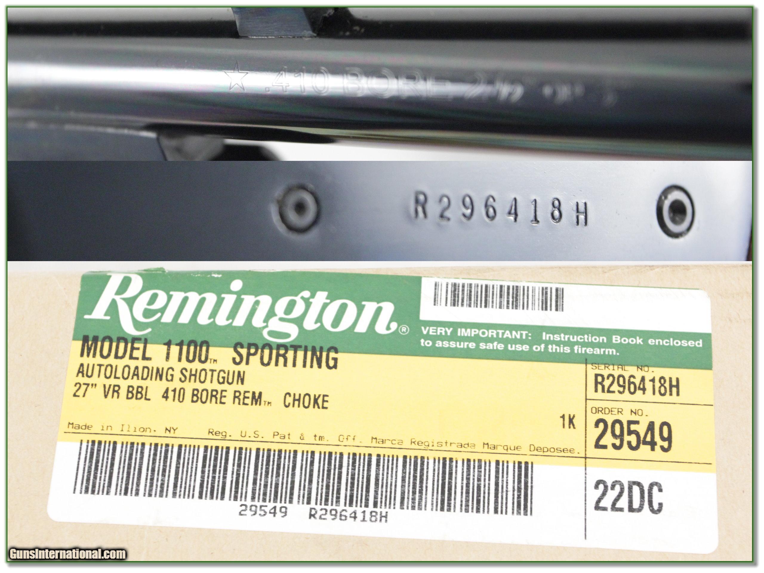 Description: This is a Remington 1100 Sporting in 410 Bore. I believe unfired with no marks I see. It comes as shown in original box with 1 choke tube. It has a Vent Rib 27in barrel. I am selling it on consignment and as such lay-a-way can’t be used. It does of course have the standard 3 day inspection. Shipping and insurance is $35 or $15 more if you want it shipped in a new Plano hard case. Please email me with any questions or larger pictures. (I now consign quality firearms only 10%! Let me know if you have any you would like to sell!) [16-1165] Payment: Payment is by Money Order, Cashiers Check or Personal Check. I can now also accept MasterCard and Visa with a 3% convenience fee. PayPal can be used for some items but never firearms. Please let us know if you would like to pay via PayPal. Shipping: The shipping charge will be listed in each description. It is $35 for most guns. Some heavy guns or those insured for over $2000 will be higher. Shipments to Alaska and Hawaii are higher because air shipment is required. Most firearms are shipped within 5 days of receipt of payment. We prefer shipping at the beginning of the week to avoid firearms in transit over weekends. We package all shipments carefully and insure them for the full purchase price, rounded up to the next $100. In the unlikely event that damage occurs, it is important that you save all packaging material for the claims process. Optics are shipped Priority Mail and most other non-firearm shipments are shipped First Class. Returns: Our return policy is simple. If for any reason you are not pleased with your purchase, you may return your item for a refund. The only exception is ammunition, it cannot be returned. It is important to us that you are happy. Guns cannot be fired or dissembled before returning them and must be returned in the same condition as received. Notification of a return must occur with-in 3 days of receipt at your dealer. Shipping, convenience and dealer fees are not refundable and are the responsibility of the buyer. Lay-a-way: If needed, we offer a 60 day lay-a-way option on most firearms. It is 1/3 now, 1/3 in 30 days and 1/3 in 60 days. Lay-a-way firearm sales are final. Consigning your firearms with Shooting Investments: We will help you get top dollar for your firearms. While most local guns shops charge 20% or more, our fee is only 10% with a minimum of $50. At your local gun shop it might take months to sell. Selling on-line provides instant access to thousands of interested buyers. You won’t find any other on-line dealer willing to sell your firearms for only 10% or listing every gun on 4 separate s. Selling through an House typically costs the seller 15% and the buyer an addition 15% (so 30%) and you have to wait several months to sell and longer to receive funds. If properly priced, we will sell your firearms in a week or two. Send us an email or give us a call and we’ll explain how easy it is for you to get top dollar. Trading: We collect guns and usually just trade for guns we want to add to our collections. We often sell guns for others wanting to purchase one of ours. We find this the most fair to both of us. Our Commission is only 10% and we hold the gun you want until yours sells. Please contact us if you want to sell one of yours to buy one of ours. Help for California Buyers: We are happy to ship to California. It is the buyer’s responsibility to make sure any item you buy is legal in your state. We are also happy to help with your purchase of a firearm from someone other than us. If you see a gun you would like to buy but the seller can’t or won’t ship to California we can help. You buy the gun and have it shipped to us. We’ll then ship it to your California dealer. The cost for this service is only $30 + shipping. Let me know if we can help! SOLD |