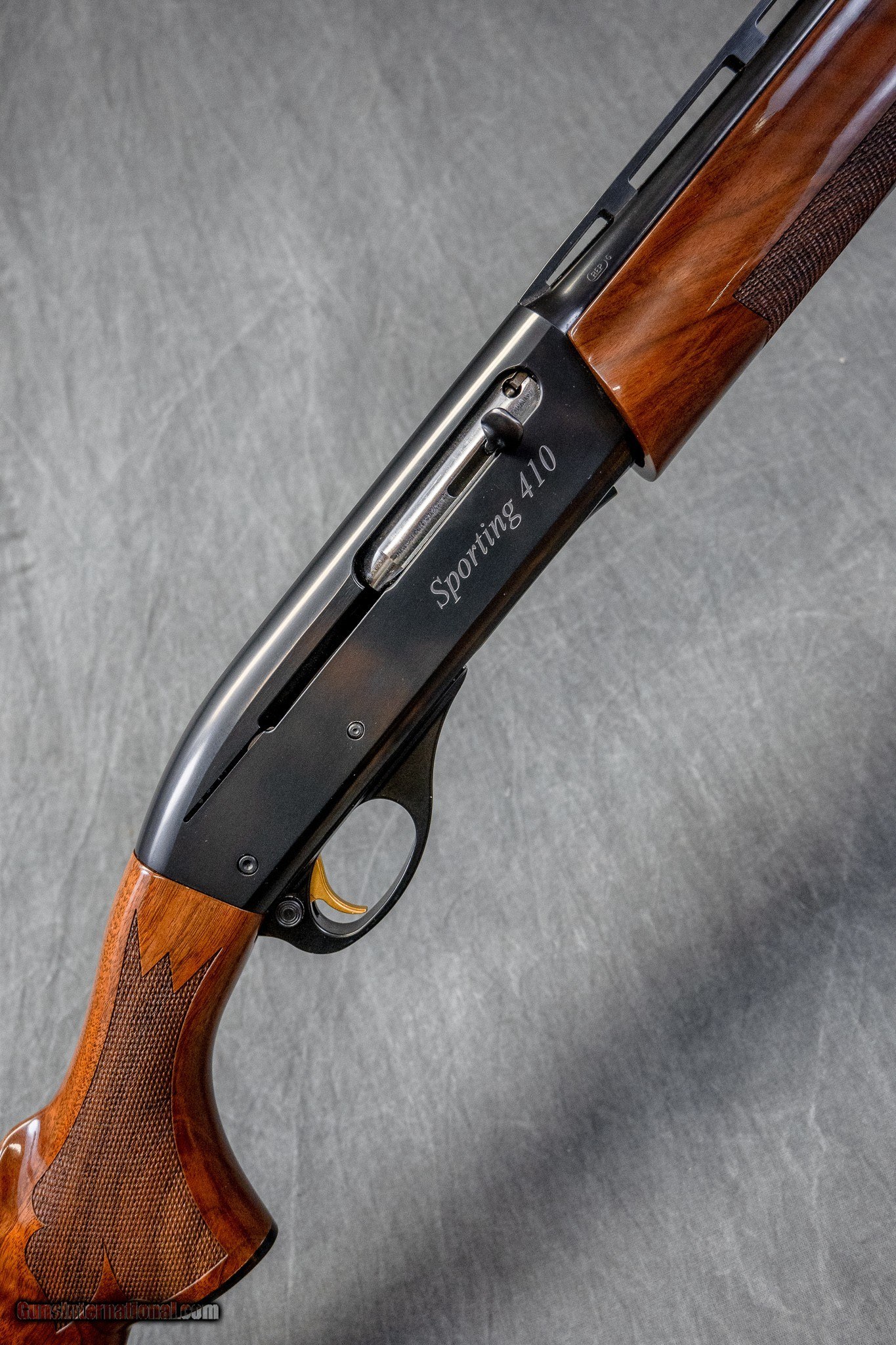 Description: Specifications Maker:REMINGTON Model:1100 SPORTING Gauge/Caliber:410 GA Barrel Length:27" Chambers:2 1/2" & 3" Rib Design:FLAT VENTED Weight:7 lbs 8 oz Bore/Chokes Choke Tubes:EXTENDED BRILEY CHOKES : SKT, LM, M, M, F Stock Dimensions Drop At Comb:1 1/2" Drop At Face:2" 4 1/2" Drop At Heel:2 1/2" Cast At Face:1/16" OFF 4 1/2" Cast At Heel:1/8" OFF Length Of Pull:13 7/8" Pitch:4 1/2" / 9 DEGREES Special Features: BLUED RECEIVER ENGRAVED "SPORTING 410" HIGH GLOSS FINISHED STOCK WELL FIGURED WALNUT STOCK ORIGINAL RECOIL PAD ORIGINAL FOREARM REM SHIPPING BOX CONDITION: VERY GOOD Circa:2004 + / SERIAL # CC15155A Number:C8715 To see and enjoy the entire inventory of fine shotguns, rifles and handguns on display in the Fieldsport Gun Room, please visit us at: Fieldsportltd/gunroom/all.php SOLD Shotgun Gauge: .410 Gauge |
