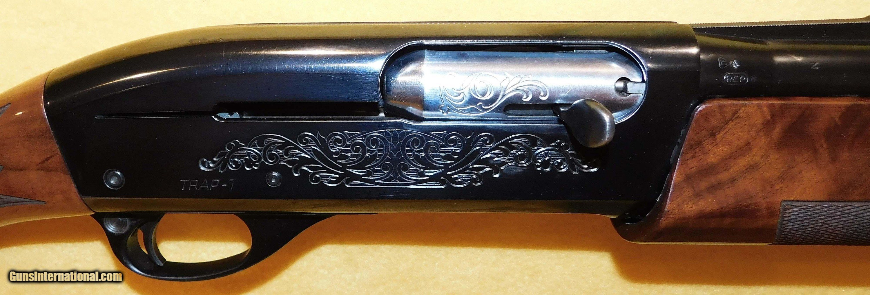 Description: REMINGTON 1100 TRAP-1 IN 12 GA CAL., WITH 30" BARREL. COLOR BLUE. CONDITION 96%. SERIAL NUMBER N060762V. REMINGTON MODEL 1100 DELUXE TRAP-1 (SEMI AUTO) IN 12 GAUGE CALIBER, TWO BEAD VENT RIB MIRROR BORE BARREL WITH FIXED FULL CHOKE, HIGH GLOSS WALNUT CHECKERED STOCK AND FOREARM EXCELLENT, 2 ¾” CHAMBER, 96% OVERALL CONDITION, OUR STOCK # D3620 SOLD |