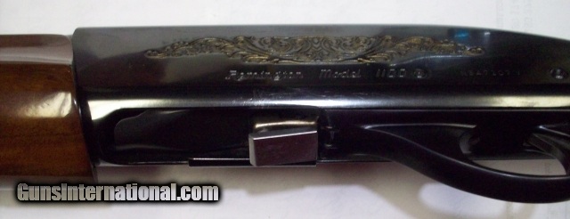 Description: This 12 ga. shotgun is a Remington 1100 TRAP-T model with a 30" Vent Rib full choke barrel. Adjustable butt pad. Extended bolt closer. Up graded wood with no cracks, scraches or goughes. Metal has no rust, dings or sctathes. Condition 99%. $1400.00.  SOLD |