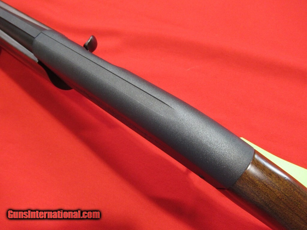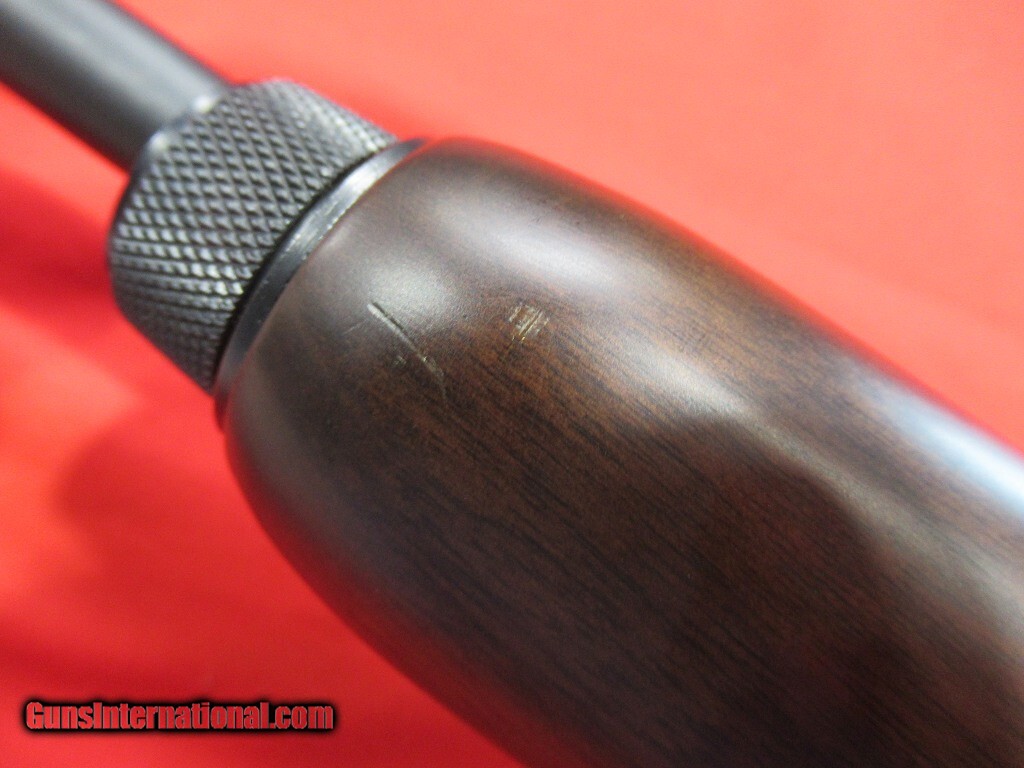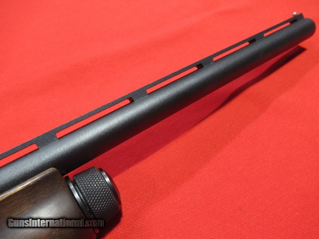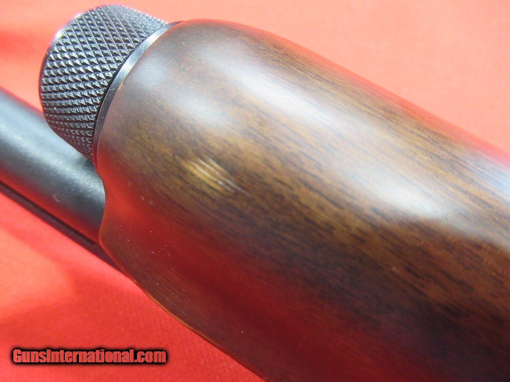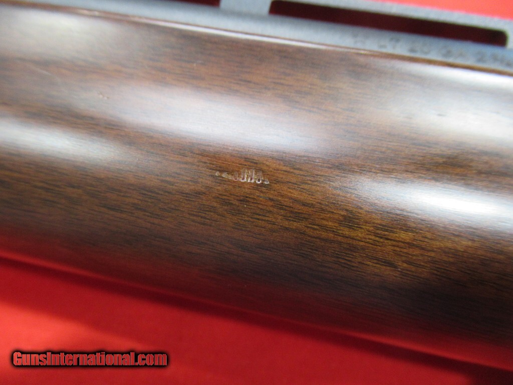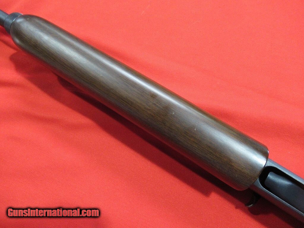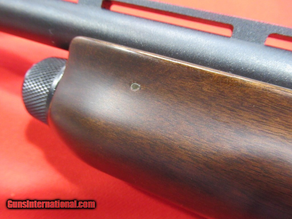 Description: Excellent condition with a few very light blemishes on the stock, appears test fired only. Walnut stock, ventilated rib, threaded for Remchoke. SOLD |