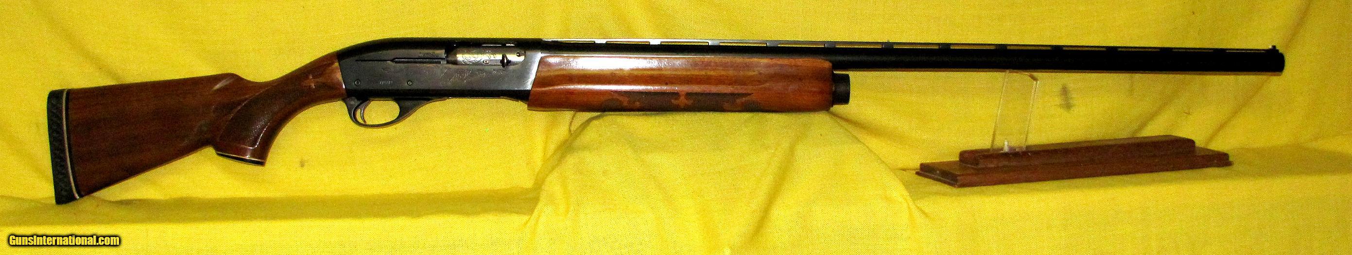 Description: REMINGTON model 1100 in 12 GA CAL., with 30" barrel. Color BLUE. REMINGTON MODEL 1100 TRAP, 2 3/4' CHAMBER, EXCELLENT BRIGHT BORE, VENT RIB FULL FIXED CHOKE, SHORTENED STOCK L.O.P. 12 ¼” WITH RECOIL PAD, WALNUT CHECKERED PISTOL GRIP STOCK AND FORE ARM ARE IN EXCELLENT CONDITION, 98% FACTORY FINISH. OUR NEW STOCK # D31734 Condition 97%. Serial number L828321V. SOLD |