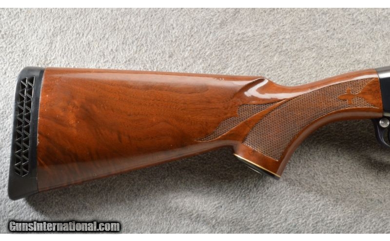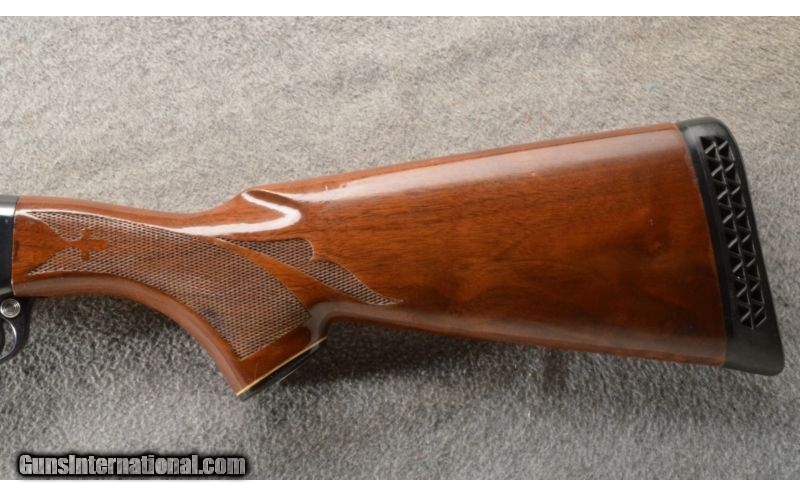 Description: This is a very hard to find Remington 1100 LT-20 Magnum. The shotgun has a 28 inch blue barrel with a vent rib and a very nice walnut stock with matching forearm. The blue receiver has roll stamp engraving and is close to new looking. The overall shotgun is quite nice with very minor use marks. SOLD Caliber Info: 20 Gauge. Chambers: 3 inch semi-auto. Metal Condition: Excellent with a few tiny spots. Wood Condition: Excellent Bore Condition: Bright and shiny. Barrels: 28 inch blue with a vent rib. Triggers: Single blue. Stock: Very nice walnut with a checkered pistol grip and a black with white diamond grip cap. Stock Dimensions: 13 7/8 inch LOP. Fore End: Matching checkered walnut with finger grooves. Butt Pad: Remington black rubber vented butt pad. Weight: 7 Lbs. 4 Oz. Sights: Single silver color front bead on the vent rib. Chokes: Fixed FULL. Item Location: Chesterfield, MI |