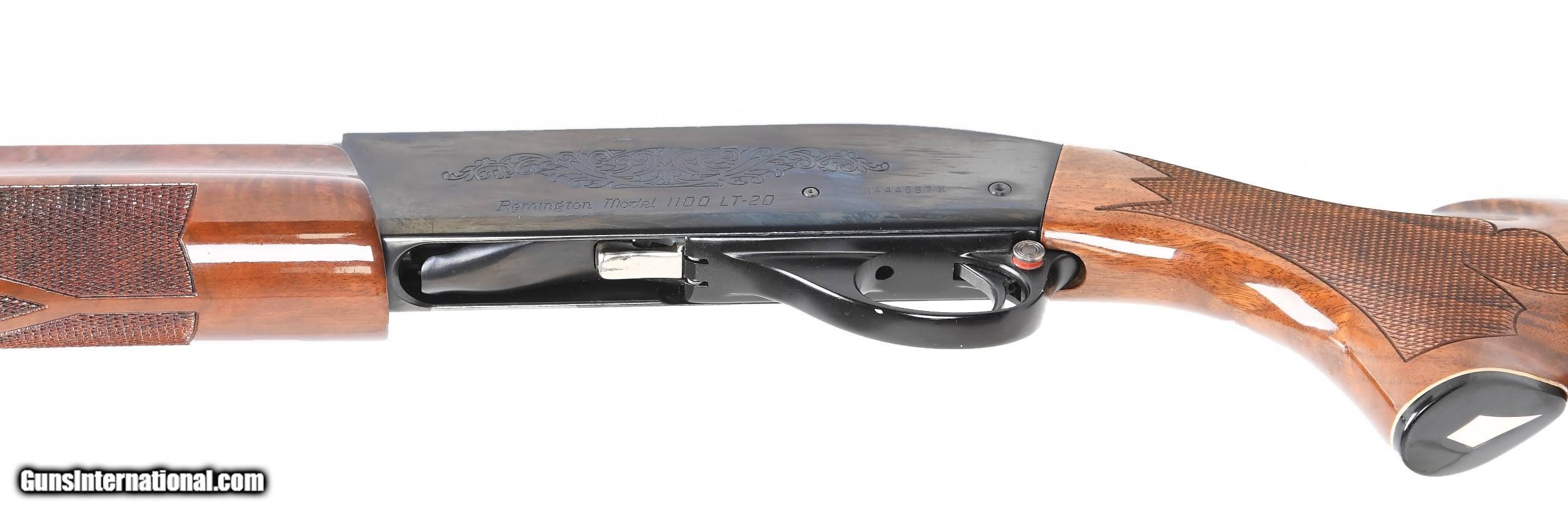 Description: SOLD Remington 1100 LT-20 SKEET-T grade 20 gauge semi-auto shotgun. The 1100 is arguably the most popular semi-auto ever built and remains so today. This gun the SKEET-T grade which had higher quality walnut stock and forearm with cut checkering. 26” vent rib barrel choked SKEET. Standard LOP of 14” and overall weight of 6 lbs. 15 oz. Condition of this gun is excellent, and it has seen very little use. Note there is barely indication that a cartridge ever touched the loading gate! $1,400.00 SN: N444657K SOLD |