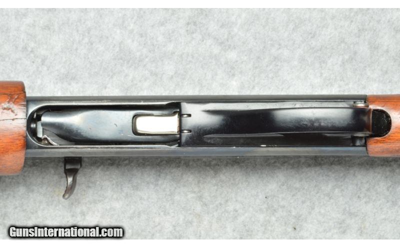 Description: SOLD Manufacturer: Modern manufacture. Caliber Info: .410 Ga. Chambers: Semi auto three round tubular magazine. Metal Condition: Good. Wood Condition: Fair to good, several deep dings in the stock. Bore Condition: Very good. Barrels: 25 inch round smooth bore vent-rib barrel. Triggers: Single stage trigger, safety is mounted at the rear of the trigger guard. Stock: Checkered wooden pistol grip stock. Stock Dimensions: 14 inch length of pull. Fore End: Checkered wooden fore-end matches the stock. Butt Pad: Black synthetic butt plate. Weight: 6 1/8 pounds. Sights: Silver bead at the muzzle. Chokes: Fixed, Improved Modified. Item Location: Berlin, MA |