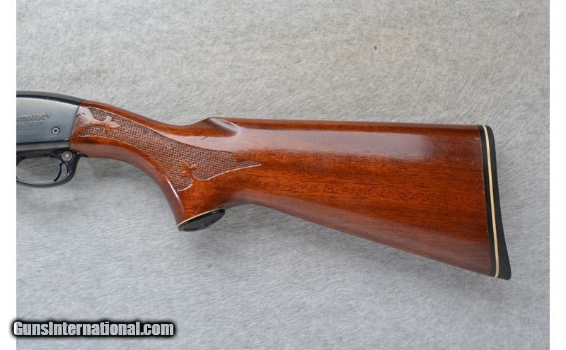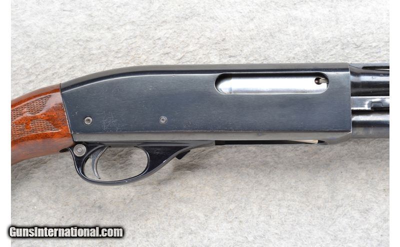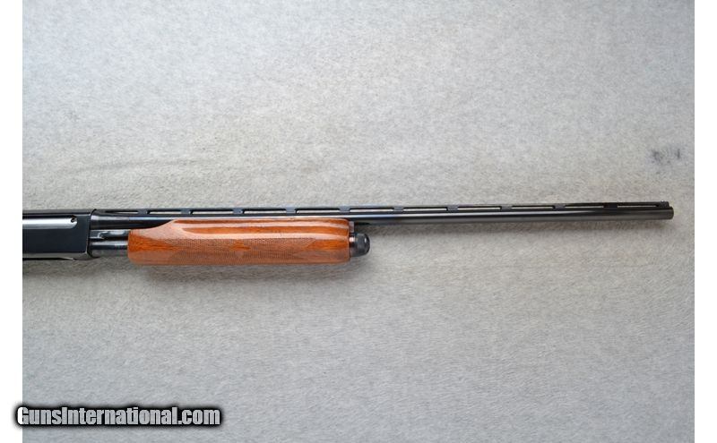 Description: This Remington Model 870LW Wingmaster is a right-hand pump action .410 Ga. shotgun. It has a 25 inch barrel with a ventilated rib. It has a metal front and middle sight. With a 3 inch chamber it has a fixed Imp. Cyl choke. The butt stock is a checkered walnut pistol grip with a black cap. The forearm is a checkered grip walnut with finger grooves. .410 Gauge SOLD Chambers: Pump Action 3 inch chamber. Metal Condition: Good. Minor handling marks and very minor freckling. Wood Condition: Good with light handling marks. Bore Condition: Bright and shiny. Barrels: 25 inch barrel with a ventilated rib. Stock Dimensions: LOP 14 1/8 inches. Fore End: Checkered grip walnut with finger grooves. Butt Pad: Pachmayr White Line rubber recoil pad. Weight: 6 Lbs. 8 Oz. Sights: Metal front and middle bead. Chokes: Fixed Imp. Cyl. Item Location: Buda, TX |