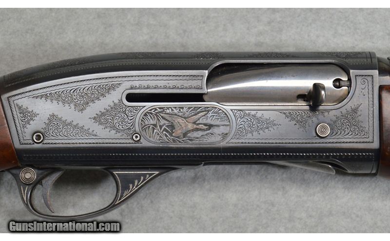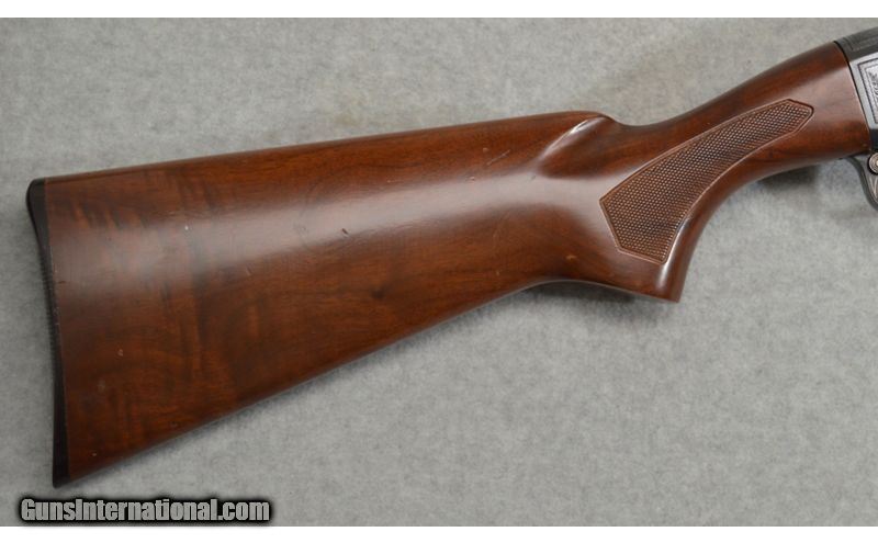 Description: Upgraded Remington Arms 11-48B 12 gauge shotgun is in good condition. It features a Cutts Compensator and a scroll engraving on the frame. Both the left and right side of the frame have a scroll engraving around a game bird flying in a wooded scene. It shows handling marks on the frame, barrel, and stock. The barrel has been reblued. SN: 5155546 12 Gauge SOLD Chambers: 2 3/4" or shorter Metal Condition: Good condition with handling marks Wood Condition: Good condition with handling marks Bore Condition: Clean and shiny Barrels: 28 Stock Dimensions: LOP 14 Fore End: Wooden with a checkered pattern Butt Pad: Remington butt plate Weight: 8lbs 3oz Sights: Single bead Chokes: Improved Cylinder Item Location: Fort Worth, TX |