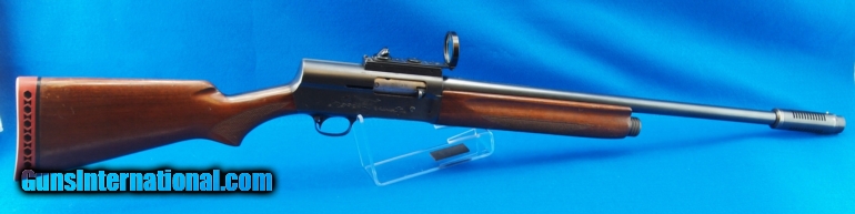 Description: Remington M-11 12 GA., 21 1/2 inch barrel with Lyman Cutts compensator (stamped with "Flaming Bomb" on barrel ), clean shiny bore, tight action, crisp trigger, wood is good, shows some handling marks, no chips or cracks, 14 7/8 inch LOP, bluing is very good with some handling marks, receiver is engraved one side with flying duck and other side a pheasant, 2 3/4 inch shells or shorter, Hydar gun sight model 47. Add 3% for credit cards $25.00 S&H SOLD |