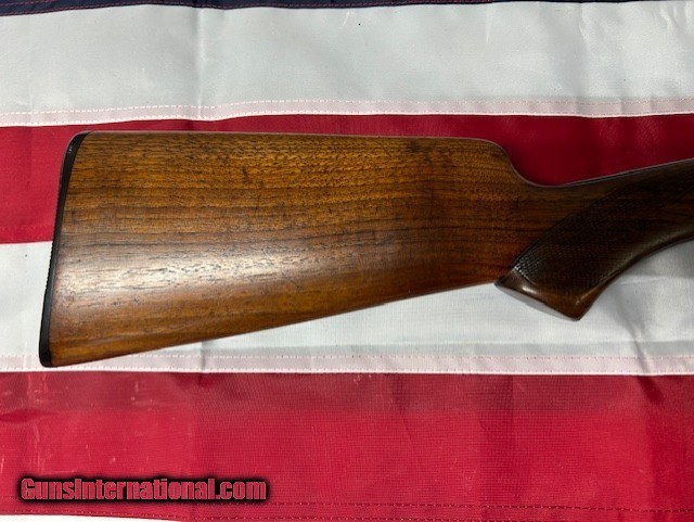This gun features a 2-3/4\" chamber, blued steel components, and American walnut checkered stock and forearm, with the specific barrel length and choke varying by individual firearm. The Remington Model 11 20 gauge shotgun has a capacity of four shells plus one in the chamber, for a total of five rounds.