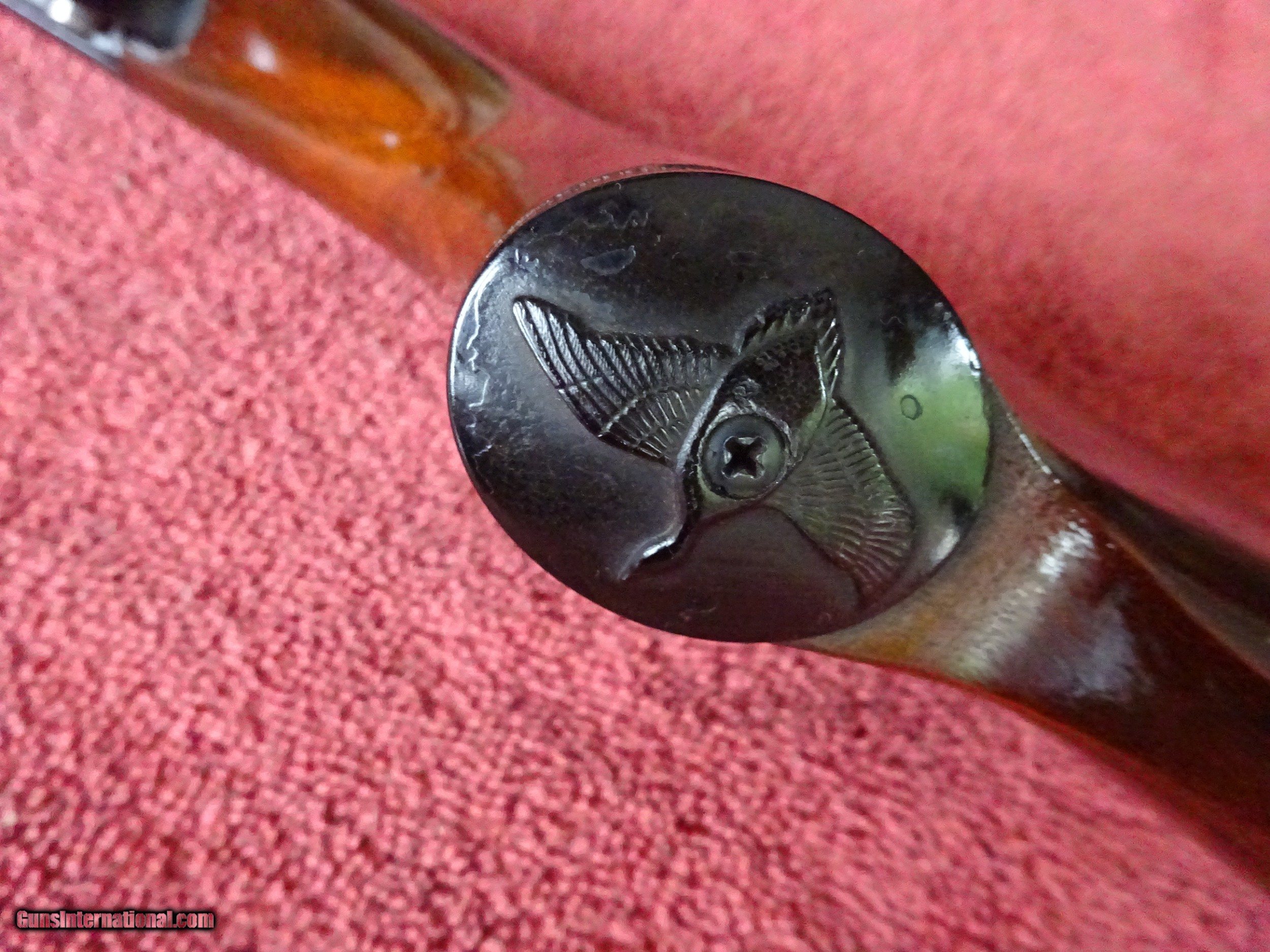 Description: REMINGTON MODEL 11-48, 28 GAUGE. 25" VENT RIB BARREL MARKED SKEET, EXCELLENT BLUE, MIRROR BORE, TWIN SIGHTS. PISTOL GRIP STOCK, CUT CHECKERING, EXCELLENT WOOD WITH ATTRACTIVE DARK COLOR. NORMAL HANDLING MARKS IN THE VARNISH. ORIGINAL GRIP CAP AND BUTTPLATE. 100% ORIGINAL CONDITION. MADE 1952-1968. $1375.00 + $50.00 Insured shipping to an FFL address. See all Pats gun listings on this site! We also have hundreds of pieces of ORIGINAL gun company advertising & memorabilia available for sale on our site SPORTINGCOLLECTIBLES. We have no reprints or reproductions. Email for more information. SOLD Curio/Relic: Yes |