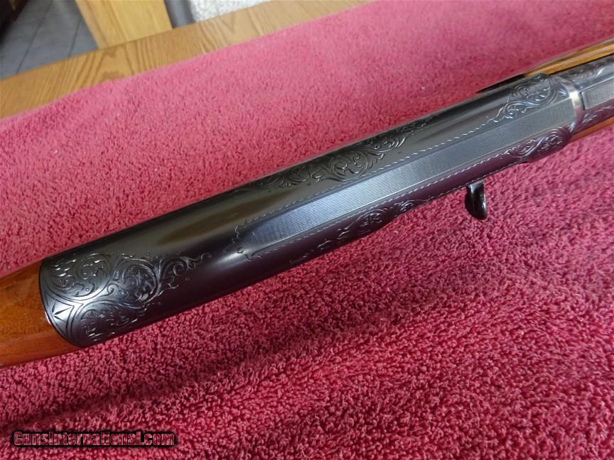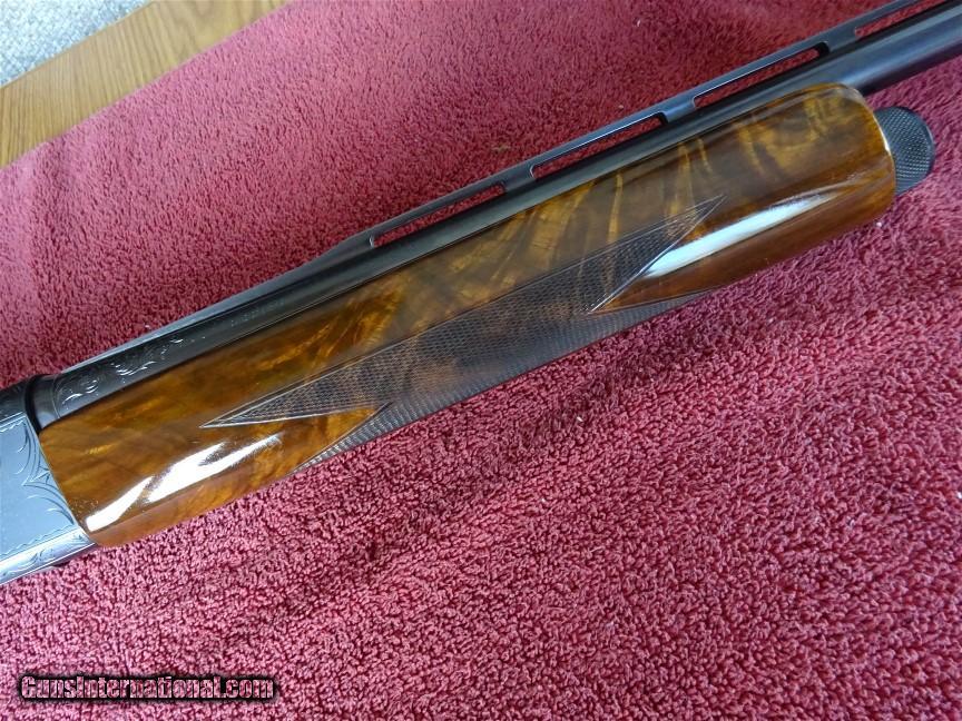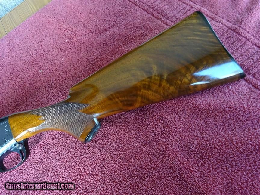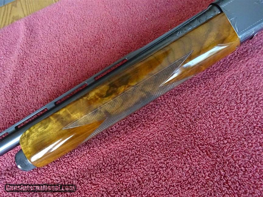 Description: REMINGTON MODEL 11-48D GRADE 20 GAUGE SKEET, 28" VENT RIB, 99% BLUE, 2 1/4" WEDGE OF SCROLL ENGRAVING ON BOTH SIDES OF THE BARREL. TWIN SIGHTS, FRAME AND TRIGGER GUARD SCROLL ENGRAVED. GORGEOUS HIGHLY FIGURED WOOD, FINE CHECKERING. STANDARD GRIP CAP AND BUTTPLATE. VERY SCARCE AND ATTRACTIVE SPECIAL ORDER GUN IN 100% ORIGINAL CONDITION. $3750.00 + $50.00 Insured shipping to an FFL address. See all Pats listings We also have hundreds of pieces of ORIGINAL gun company advertising & memorabilia available for sale. We have no reprints or reproductions. Email for more information. SOLD Curio/Relic: Yes Serial Number: 5829XXX |