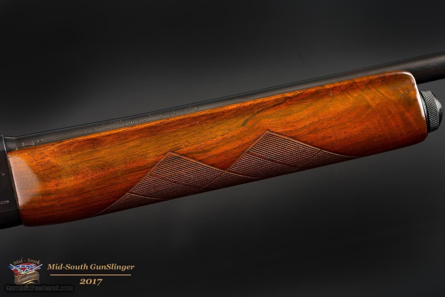 SOLD Curio/Relic: Yes Manufacturer: Remington Model: 11-48 Field Serial Number: 4031189 Chambers: 2 ¾ “ Condition: NRA Very Good Metal Condition: See Images Wood Condition: See Images Bore Condition: Excellent Barrels: 27 ½” Action: Semi Auto Blowback Gauge Info: 20 Stock: Walnut Stock Comb: 1½ Stock Heel: 2 ¼ Stock Cast: -0- Fore End: Walnut Butt Pad: OEM Plastoc LOP: 13 ½” Weight: 7 Pounds Manufacture Date: May of 1949 Item Location: Little Rock, Arkansas |