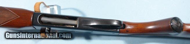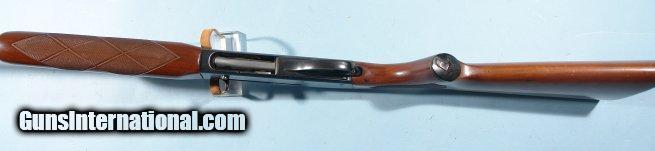 Description: REMINGTON MODEL 11-48 OR 1148 .410 3" SKEET SEMI-AUTO SHOTGUN WITH 25" VENT RIB BARREL, CIRCA 1961. Almost mint overall with 100% of it's original factory blue finish. Buttstock and forend with crisp checkering and one or two storage dings only. Factory Remington plastic buttplate and flying duck pistol grip cap. 25" barrel marked "Skeet" with stepped factory vent rib. Mid bead and white plastic front bead factory. Prime example. SOLD Curio/Relic: Yes |