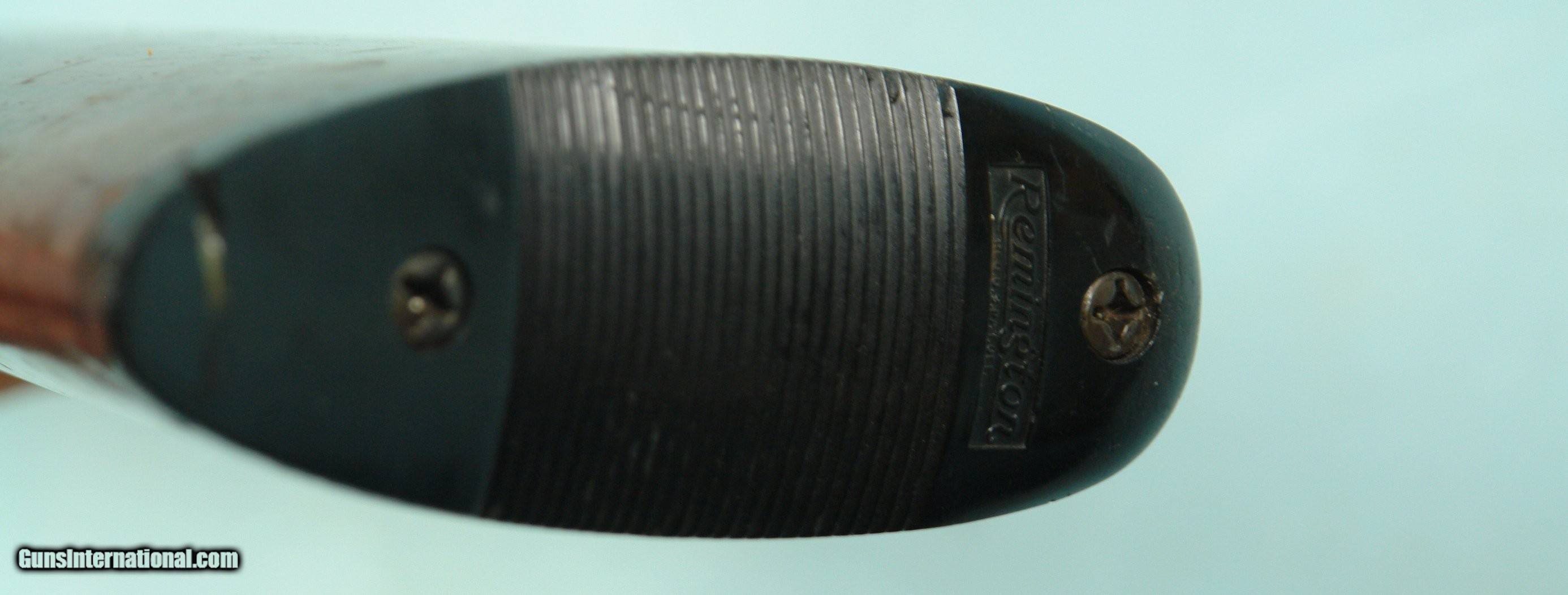 Description: REMINGTON MODEL 11-48 SEMI-AUTO .410 GAUGE SHOTGUN CIRCA 1950’S. 26” full choke with 3” chamber. All original complete and in good condition with 95% blue and the original wood finish. Original hard rubber Remington logo butt plate. Some spotty very fine salt and pepper mixed with patina on frame. Stock with moderate field use and toe of butt and butt plate toe have a re-glued repair. Working order and excellent bore. SOLD Curio/Relic: Yes Shotgun Gauge: .410 Gauge |