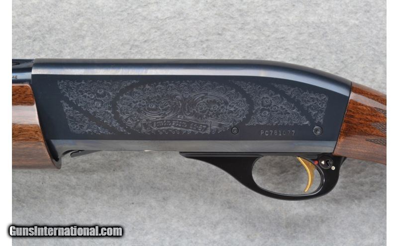 Description: Very nicely engraved receiver with bouquet and scroll. SOLD Caliber Info: 12 GA Chambers: 2 3/4 inch or 3 inch. Metal Condition: Excellent. Wood Condition: Excellent with a couple of minor handling marks. Bore Condition: Bright and shiny. Barrels: 28 inches with a ventilated rib. Light Contour. Triggers: Golden Stock: Diamond checkered grip high gloss walnut pistol grip with a black Remington cap. Stock Dimensions: LOP 13 7/8 inches. Fore End: Diamond checkered grip high gloss walnut with finger grooves. Butt Pad: Remington brown rubber recoil pad. Weight: 7 lbs. 14 oz. Sights: White bead front. Metal middle bead. Chokes: Tube. Item Location: Richfield, WI |