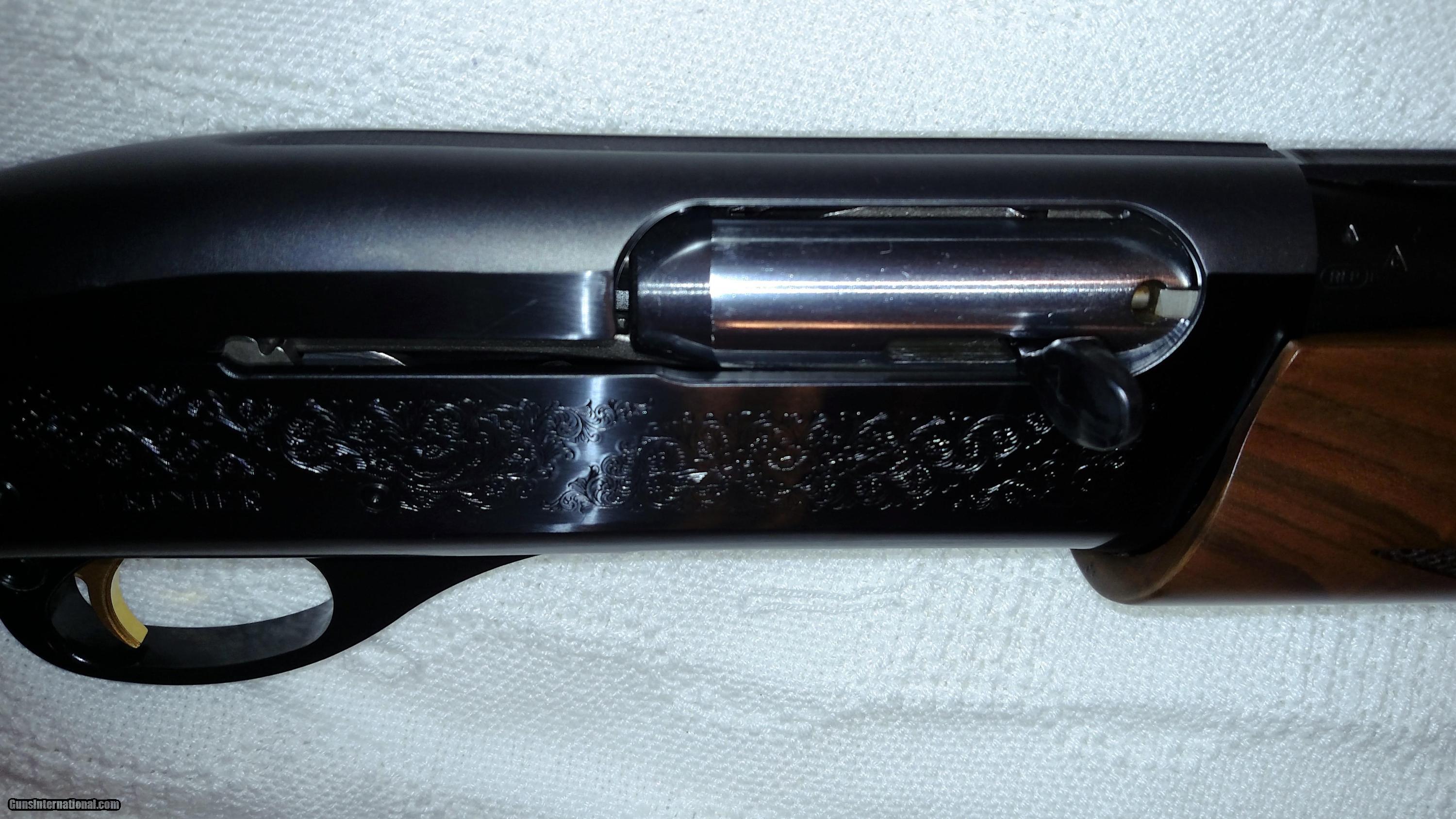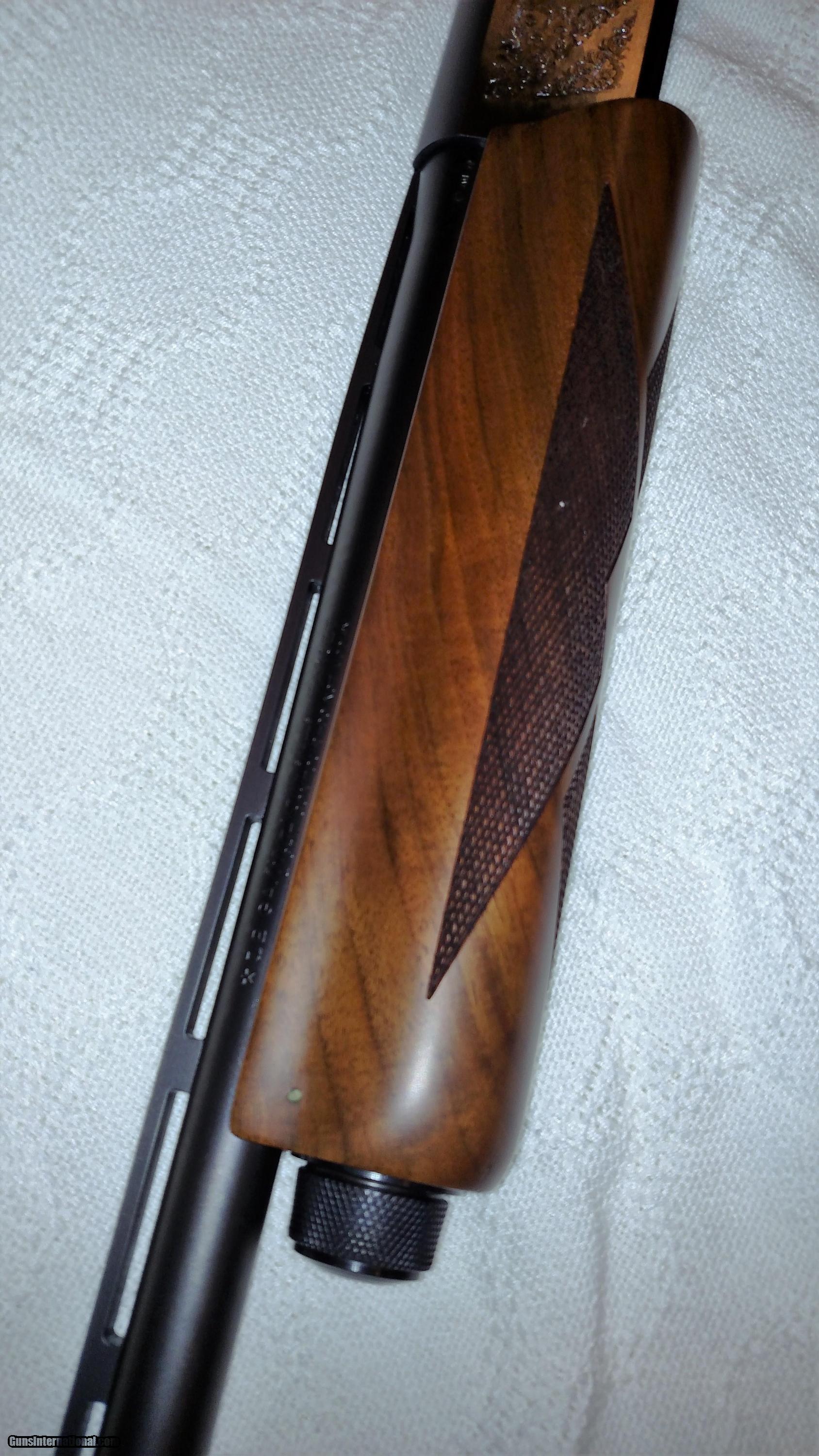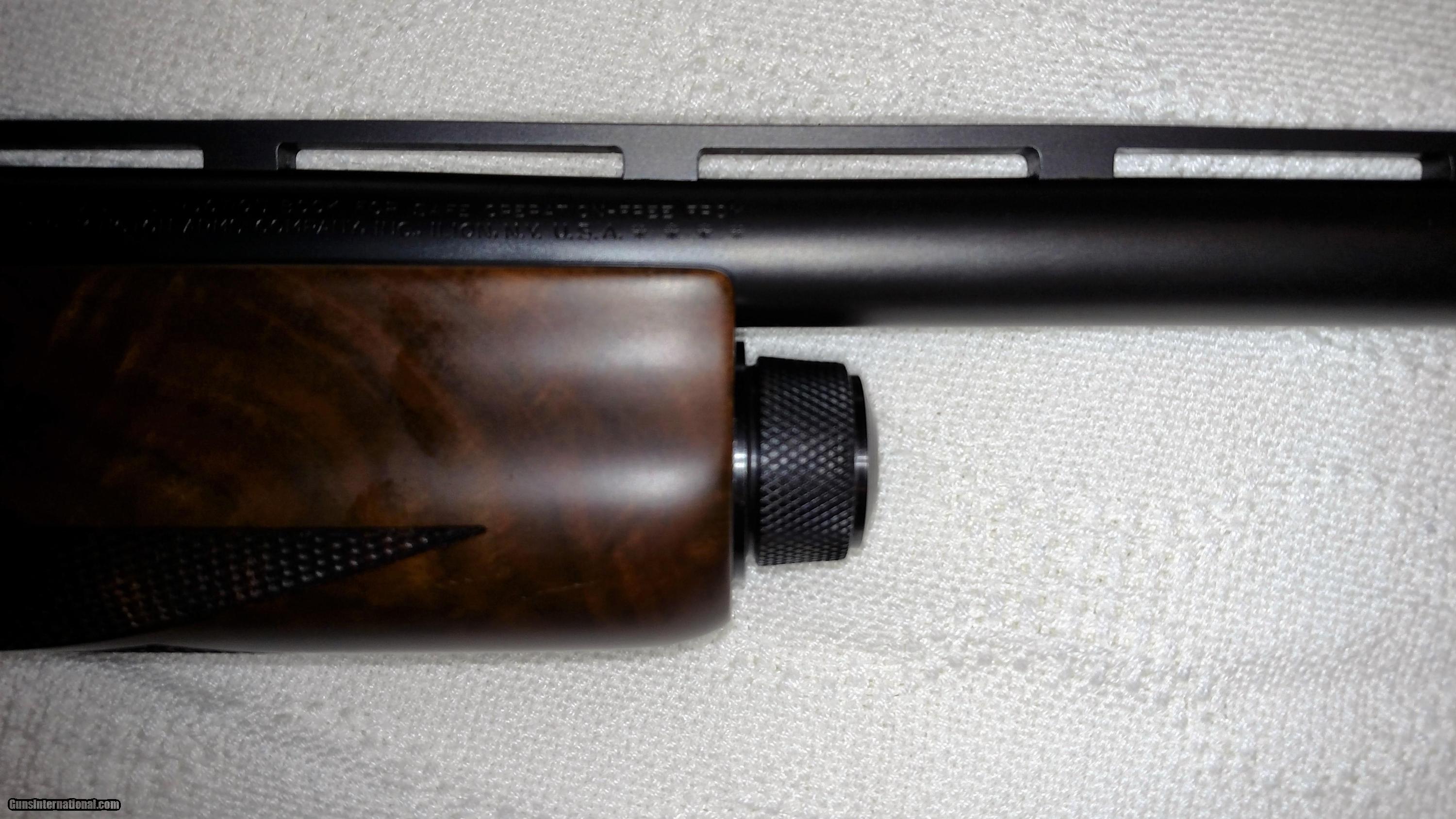 Description: For sale: Used Remington Model 11-87 semi-auto 12 gauge shotgun Specifications Gauge/Bore Mag.: 12 gauge, 3" chamber (chambers 2 3/4" and 3" shells) Action: Gas operated semi-auto Capacity: 4 round tubular magazine Barrel length: 26" ventilated rib Sights: Dual bead Receiver: Matte blued with fine etching Solid walnut stock and fore-end with checkering Overall length: 46" Date of manufacture: March 1996 This is the "Premier Target" edition of the model 11-87 series. The shotgun is in excellent condition. As you can see from the attached photos, the shotgun has been maintained well, with very little wear at all. A removable SC5 full choke is installed on the barrel muzzle. The bore is bright and shiny with no rust. The asking price for this handsome Remington shotgun is a firm $650.00. This is a true value for a long gun that has only been fired a few times and is in immaculate condition. SOLD Manufacturer: Remington Arms Model: Model 11-87 Bore: 12 gauge Condition: Excellent Metal Condition: 99+ Wood Condition: 99+ Bore Condition: 99+ Barrels: One Barrel Type: Remchoke Action: Semi-auto Triggers: Single trigger Gauge Info: 12 gauge Stock: Walnut Butt Pad: Original rubber butt pad Rib: Vented rib Finish: Matte blue Weight: 7.5 lbs Sights: Dual bead Manufacture Date: March 1996 Chokes: Full choke Engraving: Finely etched receiver Item Location: Texas |