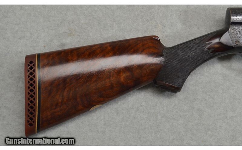 Description: Remington factory engraved Model 11 F-Grade shotgun in excellent condition. This Remington features a masterful scroll engraving featuring game birds & hunting dogs. It has been refinished and has an engraved barrel that also features a solid rib sight. Minor handling marks and finish wear around the edges and muzzle. Stock has minor handling marks but no major wear. SN: V171976 12 Gauge SOLD Chambers: 2 3/4 Metal Condition: Excellent Wood Condition: Excellent Bore Condition: Clean Barrels: 28 Stock Dimensions: 13 3/4" LOP Weight: 8 lb 11 oz Sights: Single Bead Chokes: MOD Item Location: Fort Worth, TX |