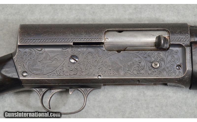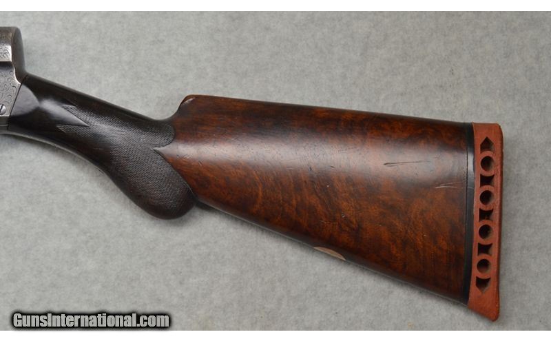 Description: Rare Remington Model 11 F-Grade 12 gauge shotgun. It features master scroll engraving on the frame and the top of the barrel. The left side has scroll engraving around two dogs and two game birds in a grass scene. The right side has scroll engraving around four game birds.The top has the same scroll engraving and "Remington Trade Mark" on the tang. The bottom has "127224" by the fore end, a dogs head on the trigger guard, and "No. 27224" on the bottom of the tang. It has a poly choke, 26" blued barrel and wooden fore end and stock with a checkered pattern on the fore end add grip. It has handling marks on the barrel, fore end, frame, and stock. The front of the fore end has a couple of small fissures and the back is bent on the left side. SN: 127224 12 Gauge SOLD Metal Condition: Very good condition with handling marks Wood Condition: Good condition with handling marks Bore Condition: Clean and shiny Barrels: 26 Stock Dimensions: LOP 14 1/4 Fore End: Wooden with a checkered pattern Butt Pad: Rubber Weight: 8lbs 9oz Chokes: Poly choke Item Location: Fort Worth, TX |