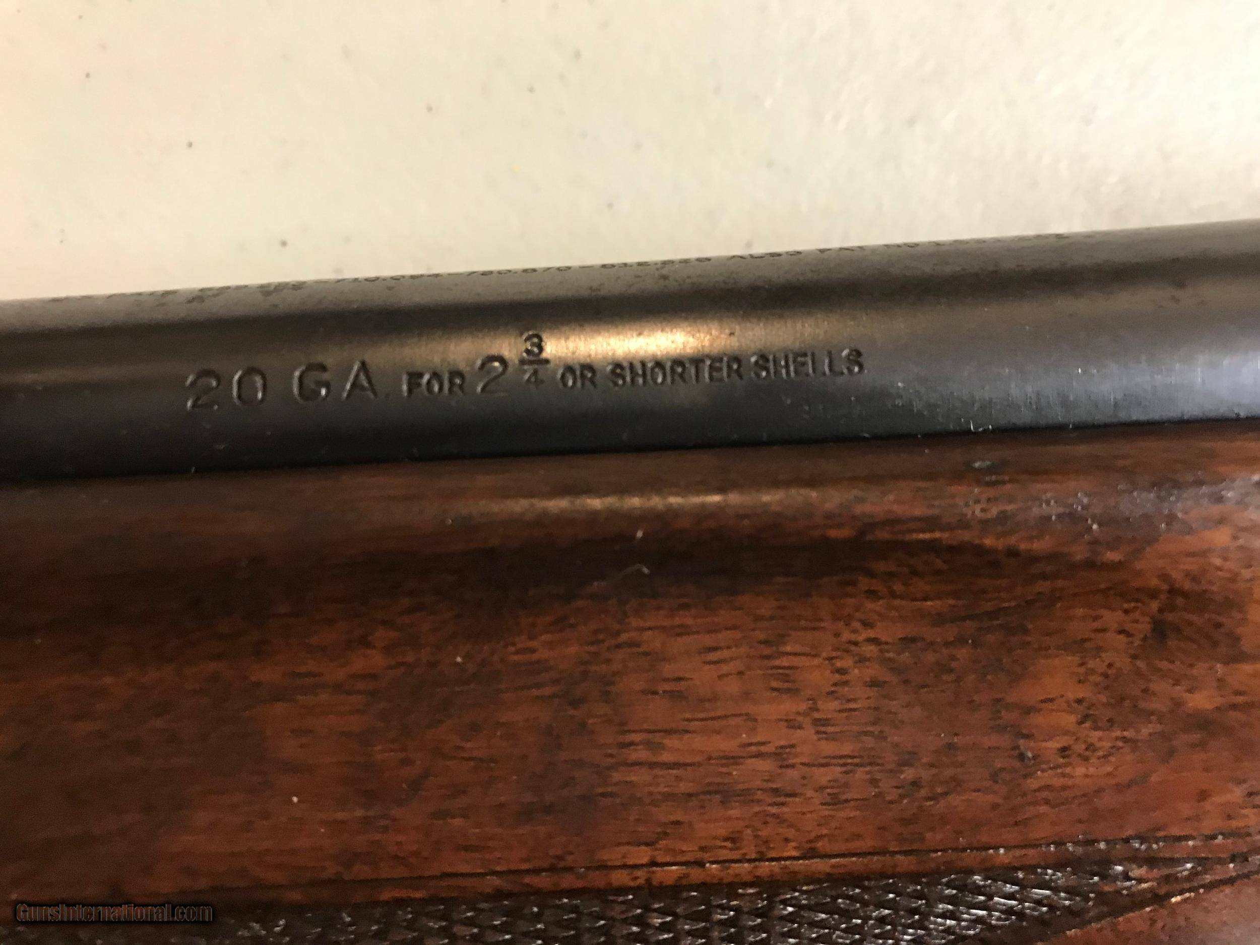 Description: Remington Sportsman 20 gauge. 28" full choke barrel. Not usually found unmolested. Wood is original with Remington butt plate. original finish on both wood and metal. Sharp checkering. Nice blue. Bolt marked " The Sportsman" Code TT 1948 SOLD Curio/Relic: Yes |