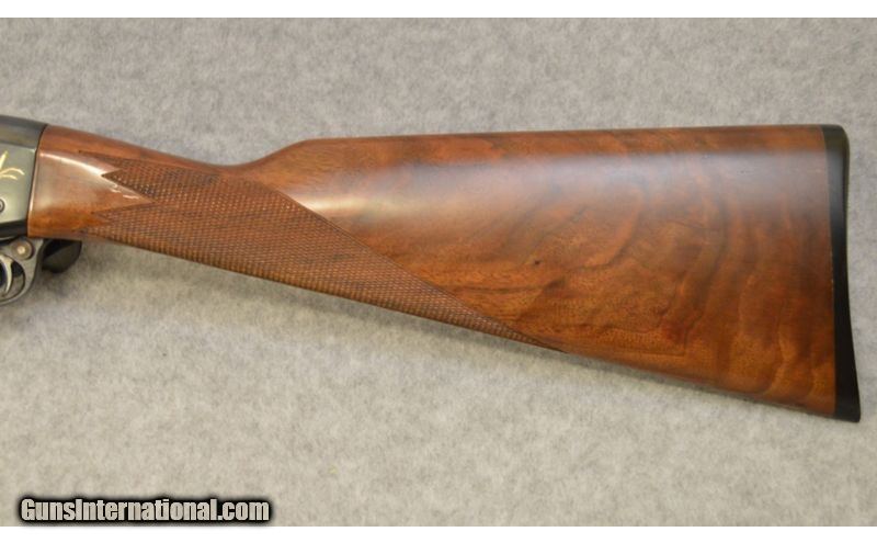 Description: This is a semi-automatic 12 gauge Remington Model 1100 Ducks Unlimited with a 2 3/4" chamber. It has a 26" blued barrel with a vent rib, a white bead front sight, and a silver colored bead mid sight. The stock is beautiful wood with fine checkering, and is a straight stock with no pistol grip. The fore end is matching wood and matching fine checkering. The wood is in very good condition, with a few scratches. The metal is in excellent condition, with minimal markings and beautiful engravings on the receiver. The bore is bright and shiny. This shotgun comes with a Briley modified choke. SOLD Caliber Info: 12 Gauge. Chambers: Semi-automatic with 2 3/4" chamber. Metal Condition: Excellent, with minimal markings and beautiful engravings on the receiver. Wood Condition: Very good, with a few scratches. Bore Condition: Bright and shiny. Barrels: 26" Blued barrel with a vent rib. Triggers: Single curved trigger. Stock: Beautiful wood with fine checkering on the stock. Stock Dimensions: 14" LOP. Fore End: Matching wood and fine checkering. Butt Pad: Black Remington Butt plate. Weight: 7 lbs. 15 oz. Sights: White bead front sight and silver colored bead mid sight. Chokes: Briley modified choke. Item Location: Huntsville, AL |