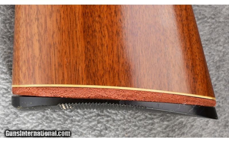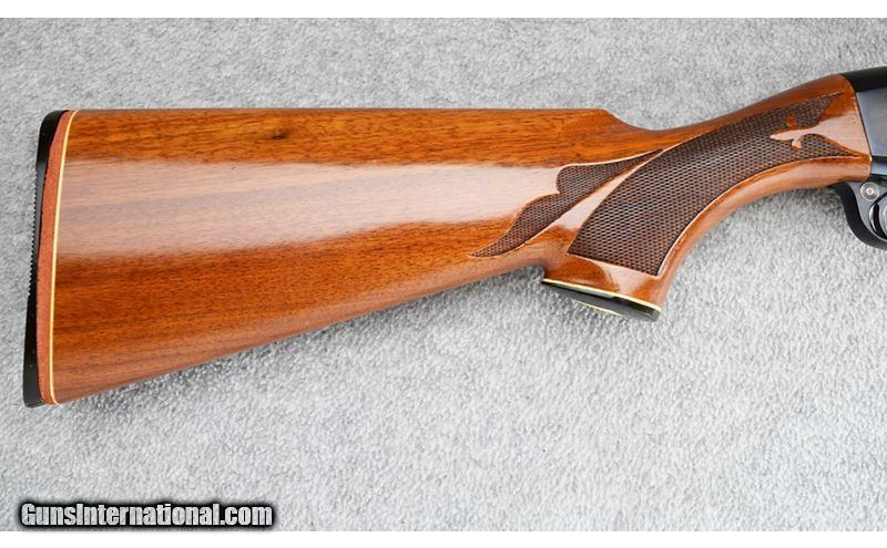 Description: This Remington Model 1100 remains in excellent overall condition showing only light use. Wood is solid and shows a couple light marks on left side of forend. There are two very fine scratches on upper left side of receiver. Left side of barrel also shows a couple scuffs. Butt pad has a piece of rubber that has been cut to act as a spacer for longer length of pull, but could be easily removed. This is a beautiful gun that has been gently used with an excellent bore. Beautiful old classic! 12 Gauge SOLD Chambers: 2 3/4 Metal Condition: Excellent Wood Condition: Excellent Bore Condition: Excellent Barrels: 24" Raised Matte Rib Triggers: Factory Stock Dimensions: 14 1/4" LOP Fore End: Press Checkered Walnut Pistol Grip with Black Pistol Grip Cap Butt Pad: Remington Ribbed Black Synthetic Butt Plate Weight: 1 lb Sights: Orange Front Bead Chokes: Poly-Choke Deluxe Item Location: Wheeling |