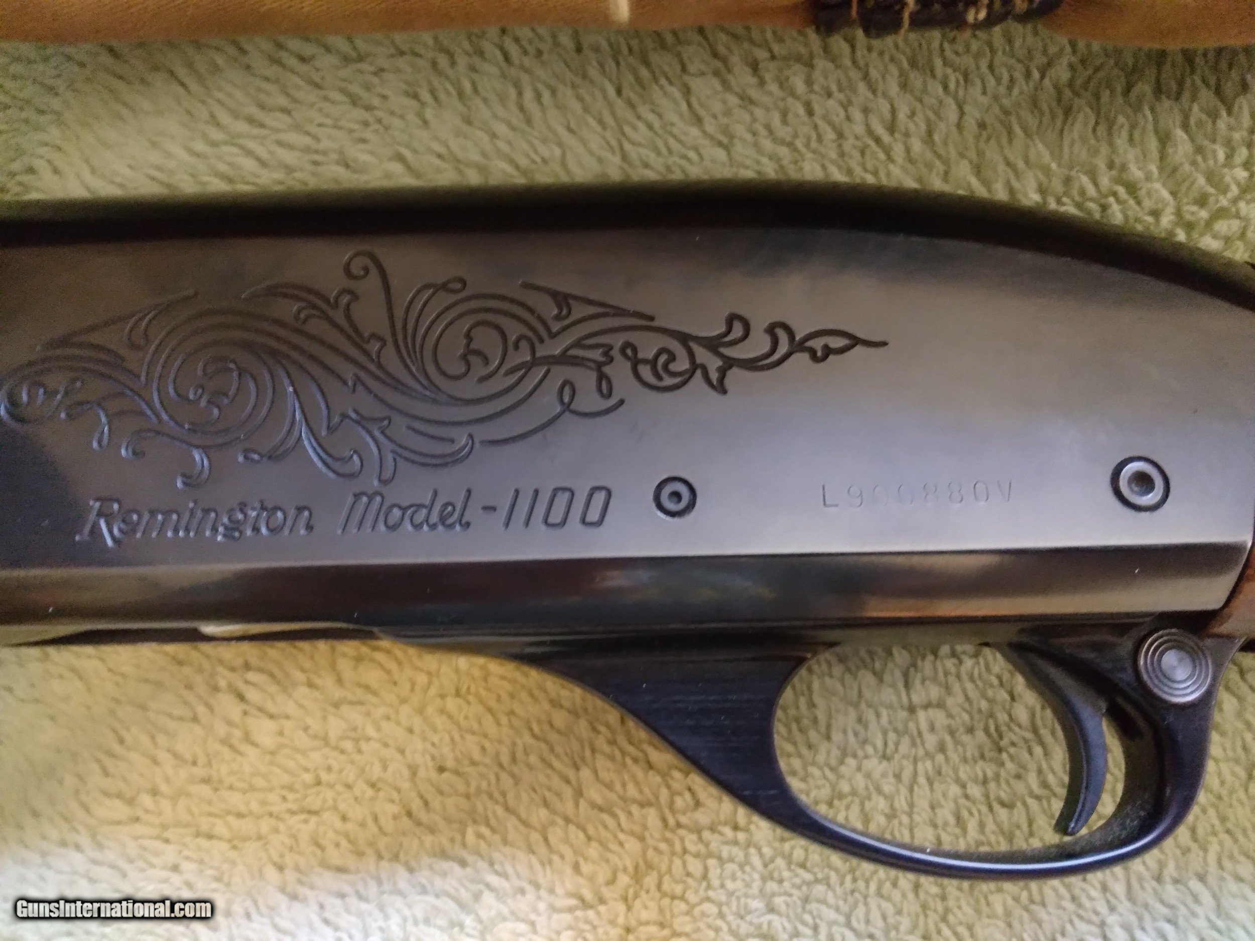 Description: Remington Model 1100, 12 Gauge Shotgun, s/n:L900880V. 2 3/4' or larger shells, 28" Mod. barrel. Excellent trap gun. Like new condition. Soft zipper case included. SOLD Shotgun Gauge: 12 Gauge Manufacturer: Remington Model: 1100 Serial Number: L900880V Barrel Length: 28 Condition: Like new Metal Condition: one small scratch Wood Condition: Like new Bore Condition: Like new Engraving: Yes (see photos) Case: Soft Zipper Case Item Location: Prescott Arizona |