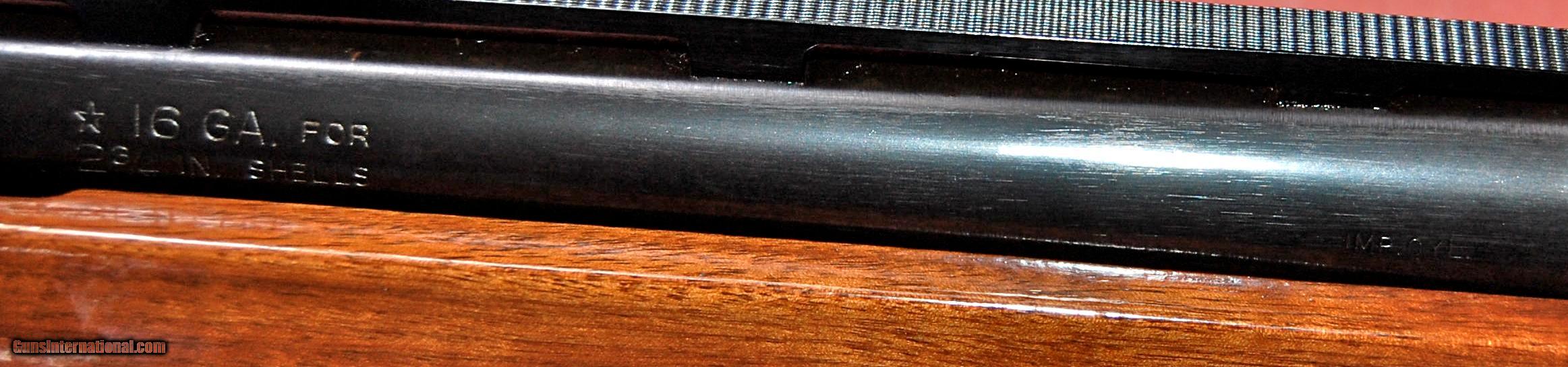 Description: Very hard to find Remington model 1100 16ga.This gun has a 26" vent rib barrel with the desireable improved cylinder choke.the gun is in excellent condition retaining at least 95% of the original blue and 98% of the original wood finish.The wood is the early style with the diamond grip cap and the mahogany colored wood.The bore is bright and free of any rust,dents,or pitting.This is a very clean all original 1100 in the rarest gauge for an 1100. SOLD Manufacturer: Remington Model: 1100 Serial Number: 146627W Chambers: 23/4 Metal Condition: excellent Wood Condition: excellent Bore Condition: excellent Action: semi auto Gauge Info: 16ga Rib: ventilated Chokes: improved cylinder |