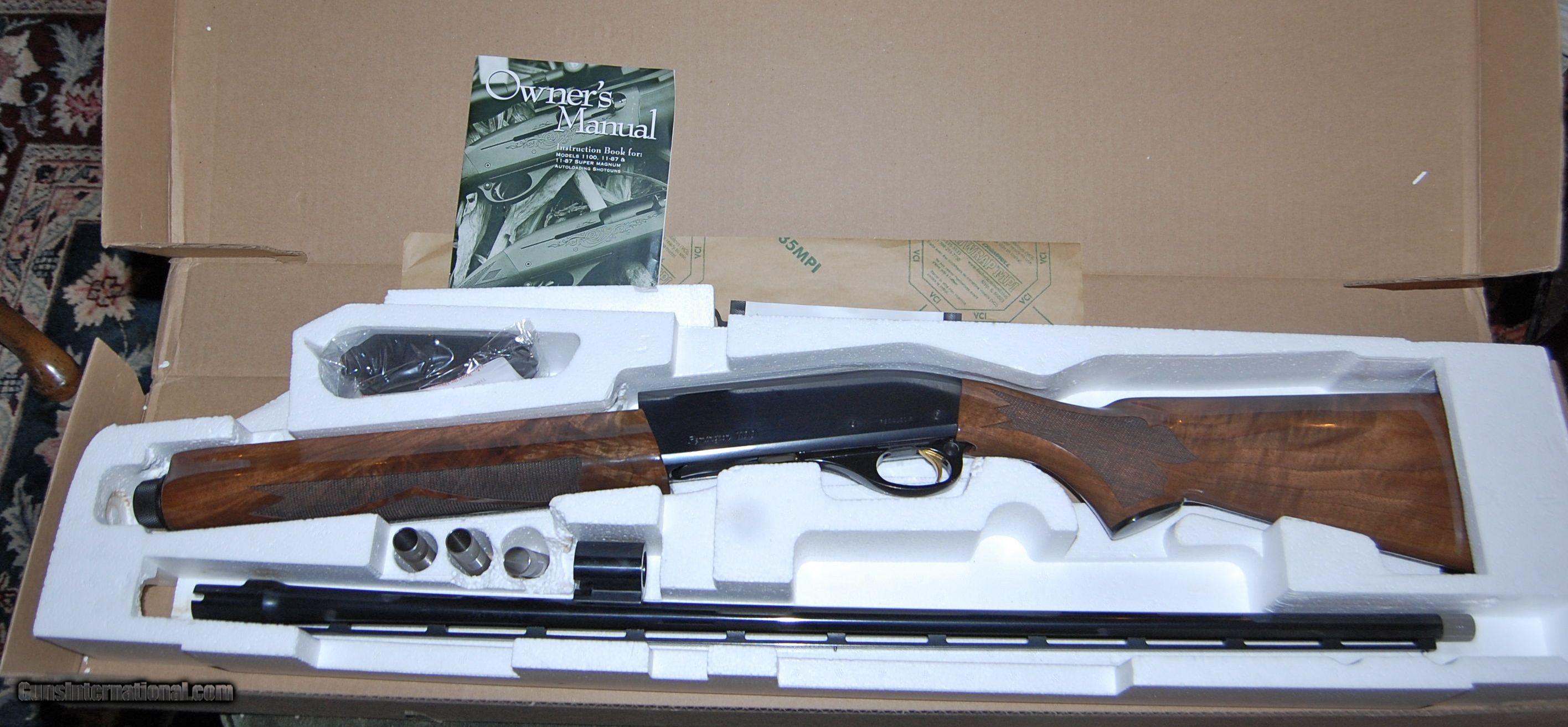 Description: Remington mdoel 1100 29 gauge sporter.This gun is new in the original box with manual and 4 extended chokes.It has highly figured walnut stock and forend.The gun has a 27" vent rib barrel.This would make a great all around upland gun or a fun clays gun.Also would be a fine beginners gun. SOLD Manufacturer: Remington Model: 1100 Sport Serial Number: RS04121R Chambers: 23/4 Metal Condition: new Wood Condition: new Bore Condition: new Action: semi auto Gauge Info: 28ga. Butt Pad: factory recoil pad Rib: ventilated Chokes: extended Remchokes |