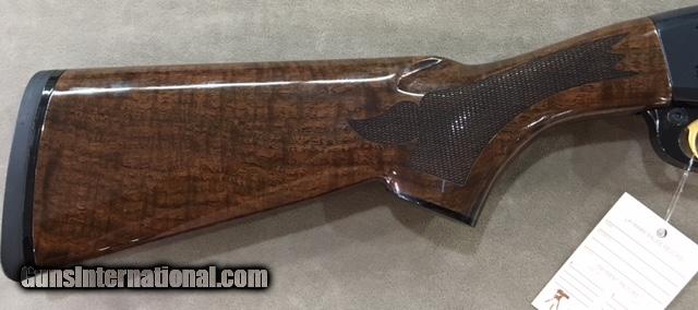 Description: This is a brand new in the box Remington Model 1100 Sporting Clays shotgun in 410 Ga. However, this one has the nicest wood we have ever seen on this model shotgun. Now all the 1100 Sporting model guns have nice wood in the stock, but that figure seldom extends to the forearm wood. This particular shotgun has it all - great figure in the buttstock and forearm both, and it matches. We have had perhaps two dozen of these guns in the past and none has even come close when it comes to wood quality of the stock and forend. You may be able to find one a few dollars cheaper but you will not find one as nice. This shotgun is new in the box with all accessories (chokes, etc.). It was purchased years ago and never taken out of the box. Our assembly for photos was its first. If you want the best of the best then this is for you! SOLD |