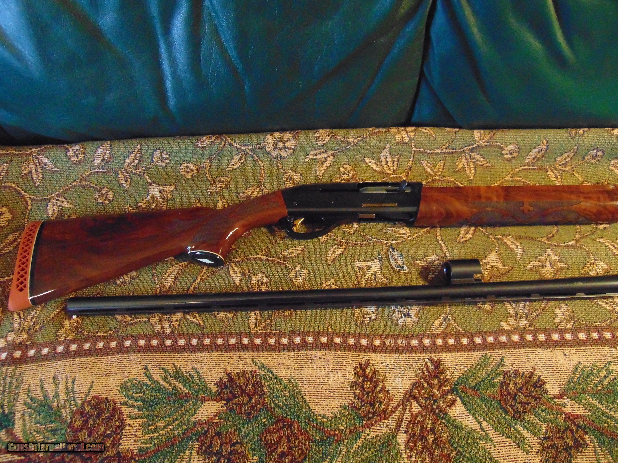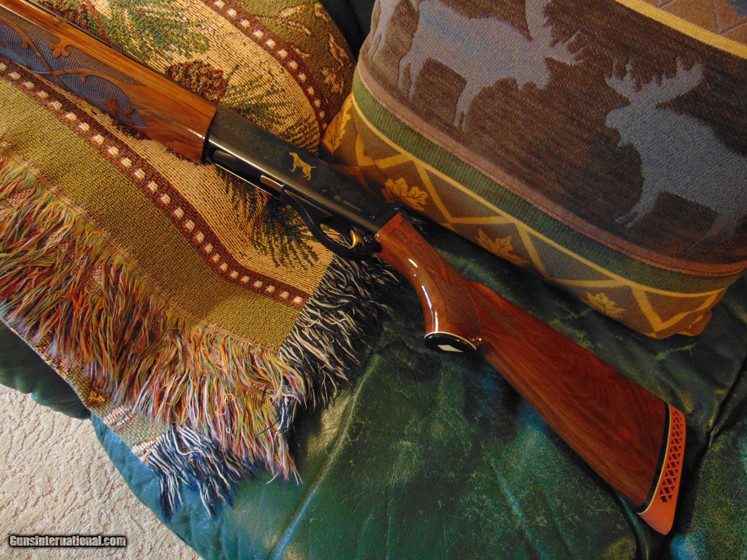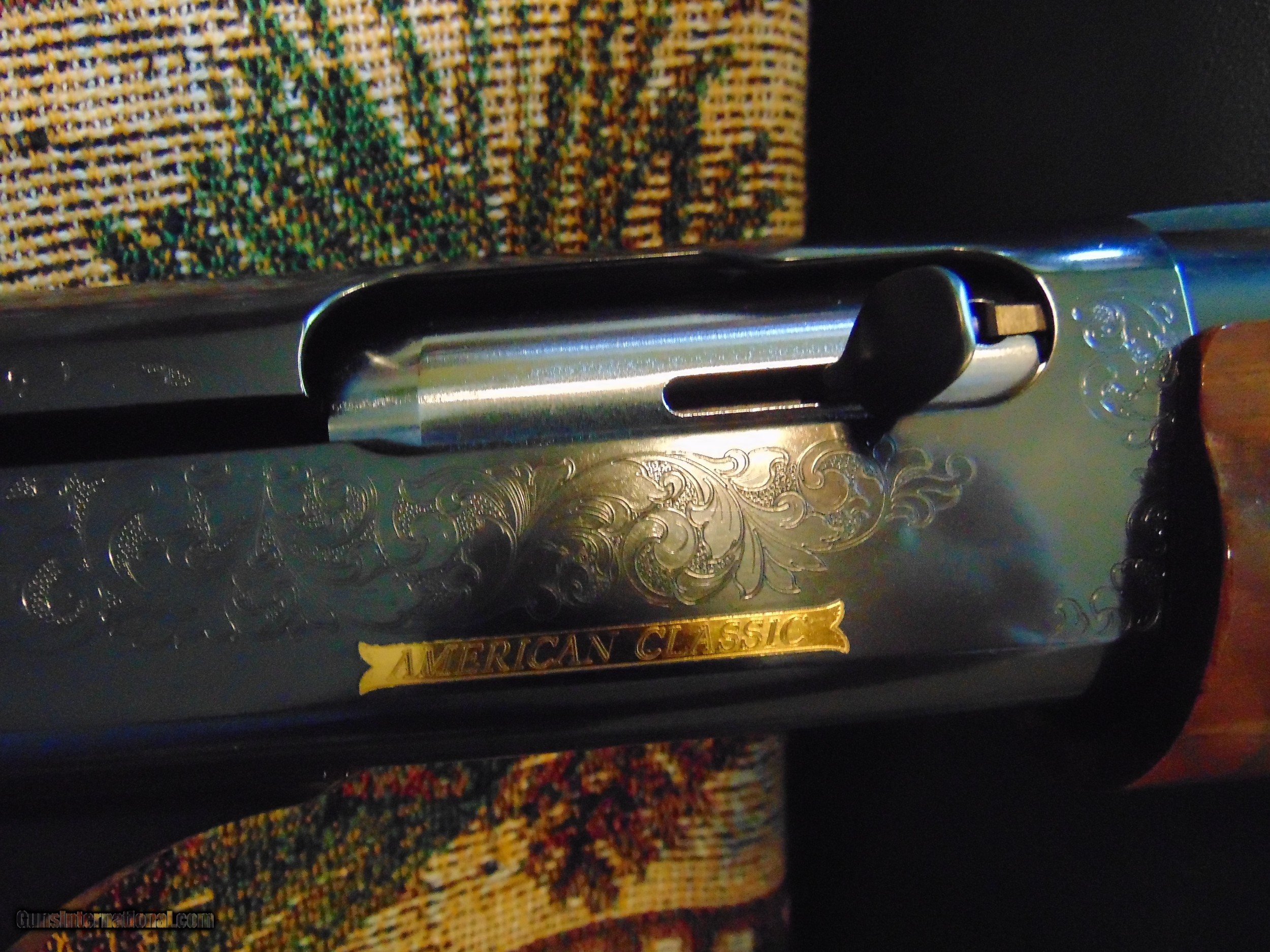 Description: ***SOLD*** PENDING RECEIPT OF FUNDS. Here is a Beautiful, Unfired, New-in-the-Box, Remington Model 1100 "American Classic" LT Sporting 20 Shotgun. Manufactured: 2014-2015. Exceptional High Gloss Wood and Bluing. 2.75" Chamber, 28" Dual Bead Vent Rib Barrel with Rem-Choke Muzzle System. Includes 3 Choke Tubes plus Wrench, Magazine Plug, Gun Lock, and Owners Manual with Packing Slip attached. Original "Excellent" Condition Box. Gold Trigger, along with Scrolled Engraving and Gold Inlays on both sides of Receiver. Perfect "White Diamond" Grip Cap. Classic Remington Red/Orange Ventilated Recoil Pad. Cosmoline removed, Cleaned, Lubed, and ready for the Field, Marsh, Woods, or Range. Shotgun shipped with an Orange Plastic Follower. I have replaced it with a Brownell's Custom Burnt Orange Aluminum Alloy Follower (see pictures). Will reinstall Factory Follower if you prefer. Please note 3 marks located on bottom (rearward) right side of Forend in photos. Shotgun arrived in Box that way. No modern-style "J-Lock" Trigger Safety. $60.00 USPS Insured Priority Shipping to Lower 48 United States. May cost more to far Western States. No International Shipping. SOLD |