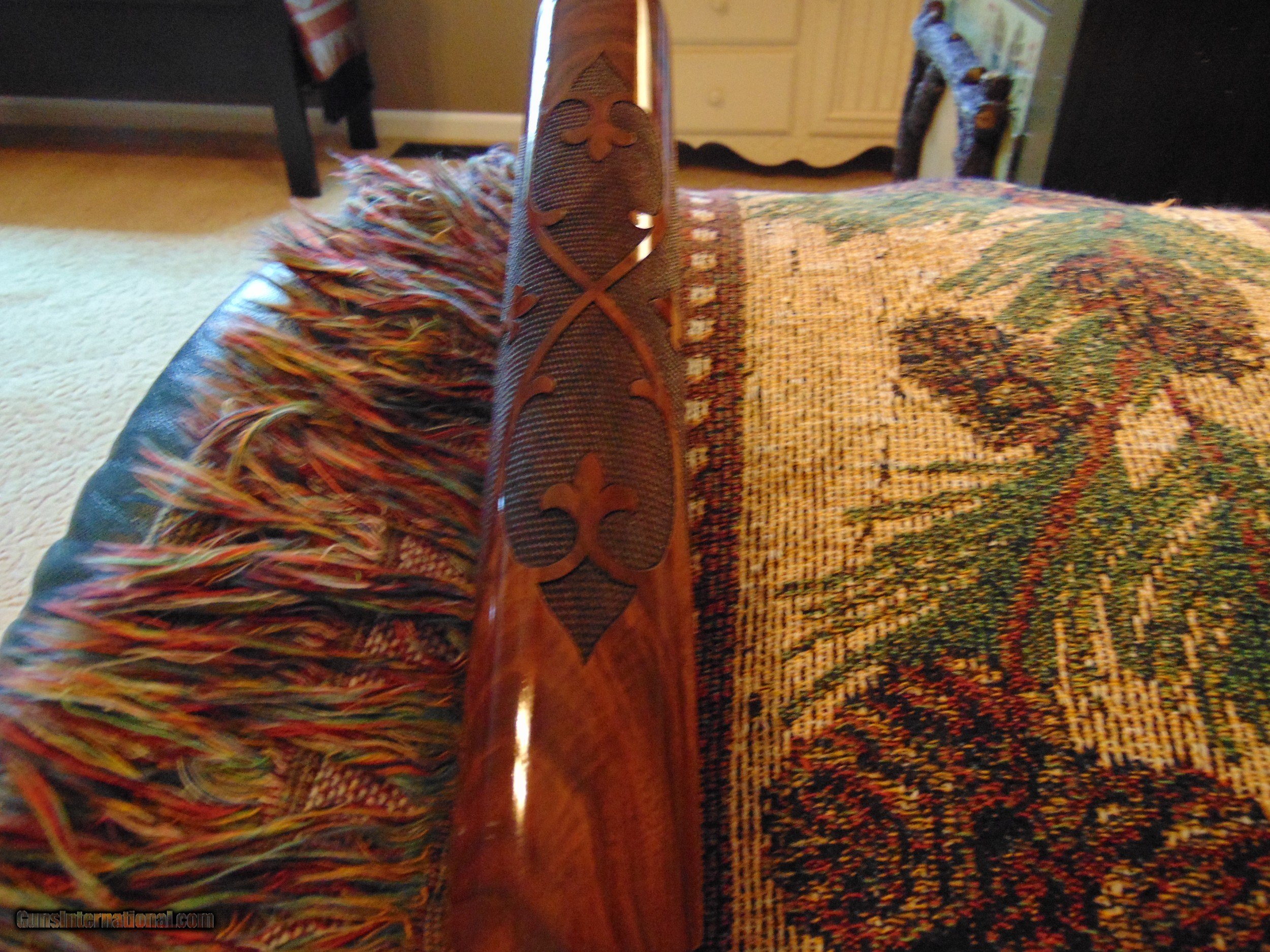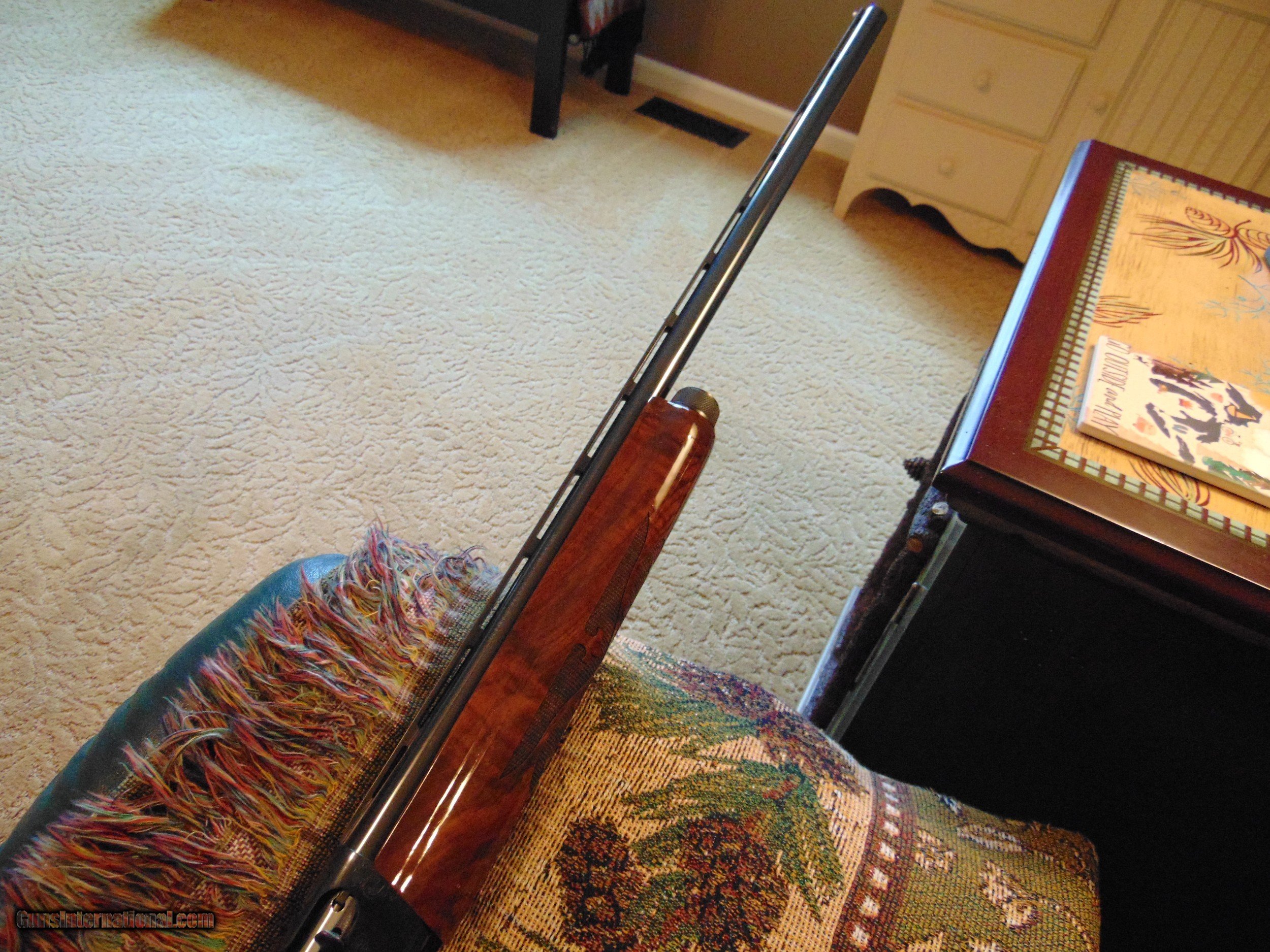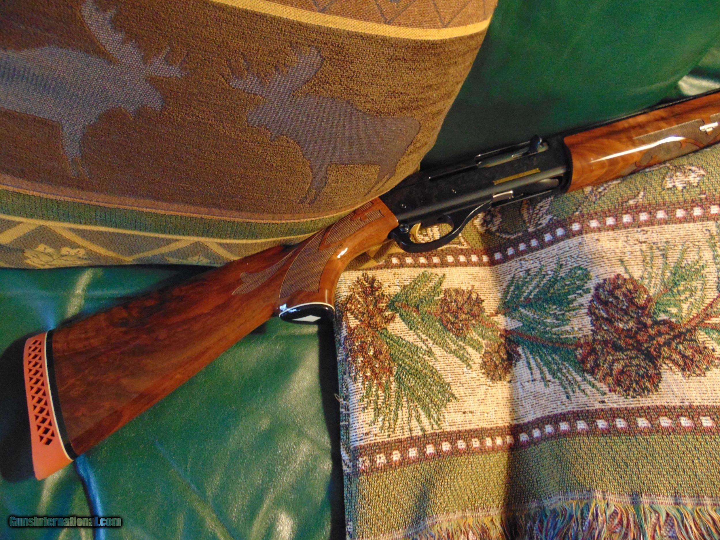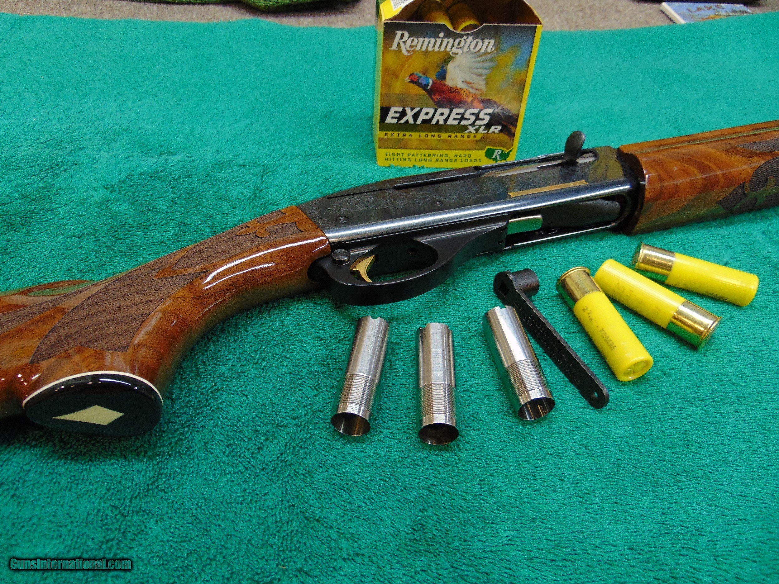 Description: ***SOLD*** PENDING RECEIPT OF FUNDS. Here is a Beautiful, Unfired, New-in-the-Box, Remington Model 1100 "American Classic" LT Sporting 20 Shotgun. Manufactured: 2014-2015. Exceptional High Gloss Wood and Bluing. 2.75" Chamber, 28" Dual Bead Vent Rib Barrel with Rem-Choke Muzzle System. Includes 3 Choke Tubes plus Wrench, Magazine Plug, Gun Lock, and Owners Manual with Packing Slip attached. Original "Excellent" Condition Box. Gold Trigger, along with Scrolled Engraving and Gold Inlays on both sides of Receiver. Perfect "White Diamond" Grip Cap. Classic Remington Red/Orange Ventilated Recoil Pad. Cosmoline removed, Cleaned, Lubed, and ready for the Field, Marsh, Woods, or Range. Shotgun shipped with an Orange Plastic Follower. I have replaced it with a Brownell's Custom Burnt Orange Aluminum Alloy Follower (see pictures). Will reinstall Factory Follower if you prefer. Please note 3 marks located on bottom (rearward) right side of Forend in photos. Shotgun arrived in Box that way. No modern-style "J-Lock" Trigger Safety. $60.00 USPS Insured Priority Shipping to Lower 48 United States. May cost more to far Western States. No International Shipping. SOLD |