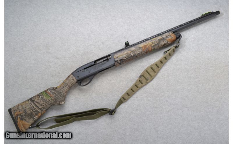 Description: Gun is in SKYLINE INC APPARITION EXCEL camo. Remington lightly engraved receiver. SOLD Caliber Info: 20 GA Chambers: 21 inch barrel is 3 inch magnum. 24 inch barrel is 2 3/4 inch. Metal Condition: Excellent. Bore Condition: Bright and shiny. Barrels: 21 inch satin black. 24 inch black. Stock: Textured grip polymer pistol grip. Stock Dimensions: LOP 12 3/4 inches. Fore End: Textured grip polymer. Butt Pad: Remington rubber pad. Weight: 7 lbs. 11 oz. with the 21 inch barrel. Sights: 21 inch barrel has a green bar high visibility front and TruViz green high visibility rear. 24 inch has a Leupold 2x7 Vari-X IIc Shotgun scope, no iron sights. Chokes: 21 inch barrel has an extended choke tube. 24 inch is fully rifled. Item Location: Richfield, WI |