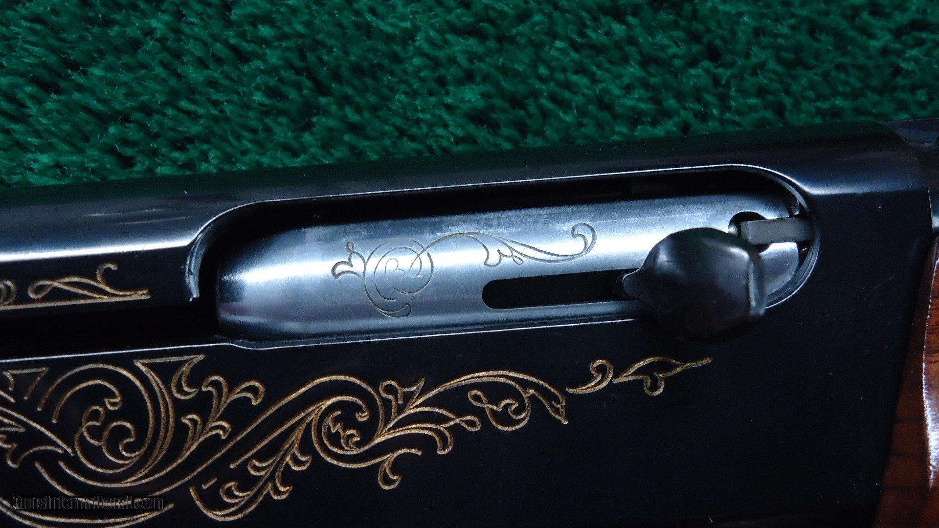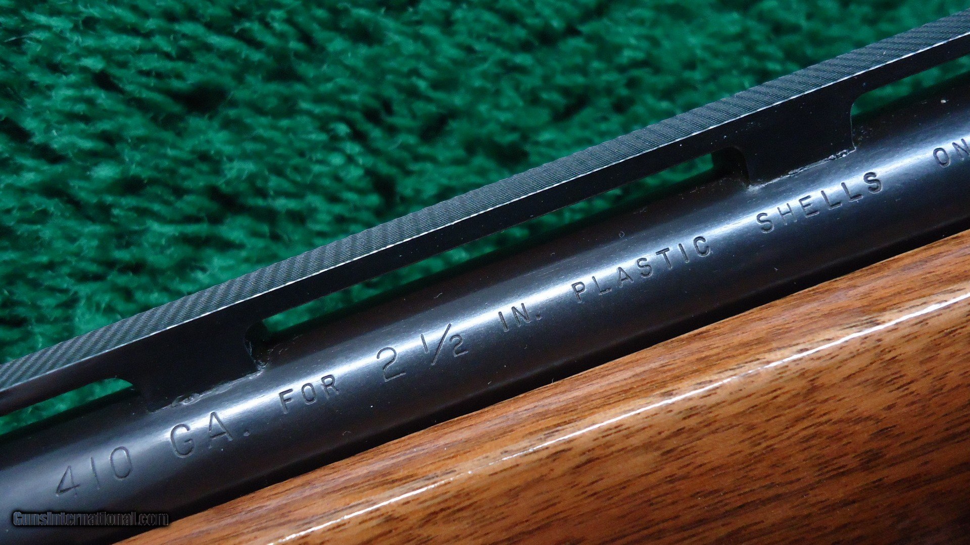 Description: Both have 25 inch ventilated rib barrels. Both choked Skeet with bright excellent bores. Metal surfaces of each gun retain about 99% original blue with a few scattered light handling marks. Sides of the receivers feature gold highlighted scroll engraving with the front left of each receiver marked in gold script ”Matched Pair” “No. 3710” “Remington Model-1100”. High gloss checkered walnut stocks and forearms with white diamond pistol grip caps show few light scratches and handling marks from field use. Both are equipped with weighted magazine caps and ventilated ribs with white beads at the muzzle and silver beads mid-rib. Leroy Merz Antique Firearms specializes in antique and vintage Winchesters and other fine American firearms. Since 1965 Mr. Merz has taken part in the world of firearms and has been a contributor to many well known reference books. We have hundreds of additional guns in every price range at our home online. Search for Merz Antiques in google. SOLD Curio/Relic: Yes Shotgun Gauge: 28 Gauge, .410 Gauge |