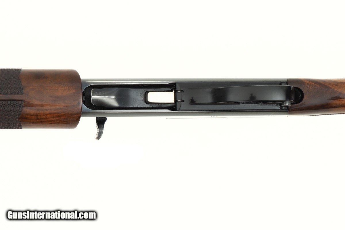 Description: 26" BARREL, 2-3/4",MULTI-CHOKE, SINGLE TRIGGER, CROSS-BOLT SAFETY, PISTOL HAND GRIP, REMINGTON FACTORY BUTTPLATE, 7 LBS 5 OZ, 14" LOP A 20 guage semi-automatic shotgun with a 26" polished blue steel barrel that has a 2-3/4" chamber, ventilated matte rib with a white bead front sight and steel middle bead installed. An interchangeble full choke tube is installed in the barrel. The lightweight polished blued steel frame is marked on the right side "SKEET" and on the left side "Remington 1100" and the guns serial number. Action is fit with a blued smooth single trigger and a cross-bolt safety. The hi-gloss semi-fancy American walnut stock is fit with a pistol hand grip that has a black hard rubber grip cap with golden color "RA" inside a golden color shield, cut checkering and 14" LOP to a Remington plastic buttplate. 7 Lbs 5 Oz.