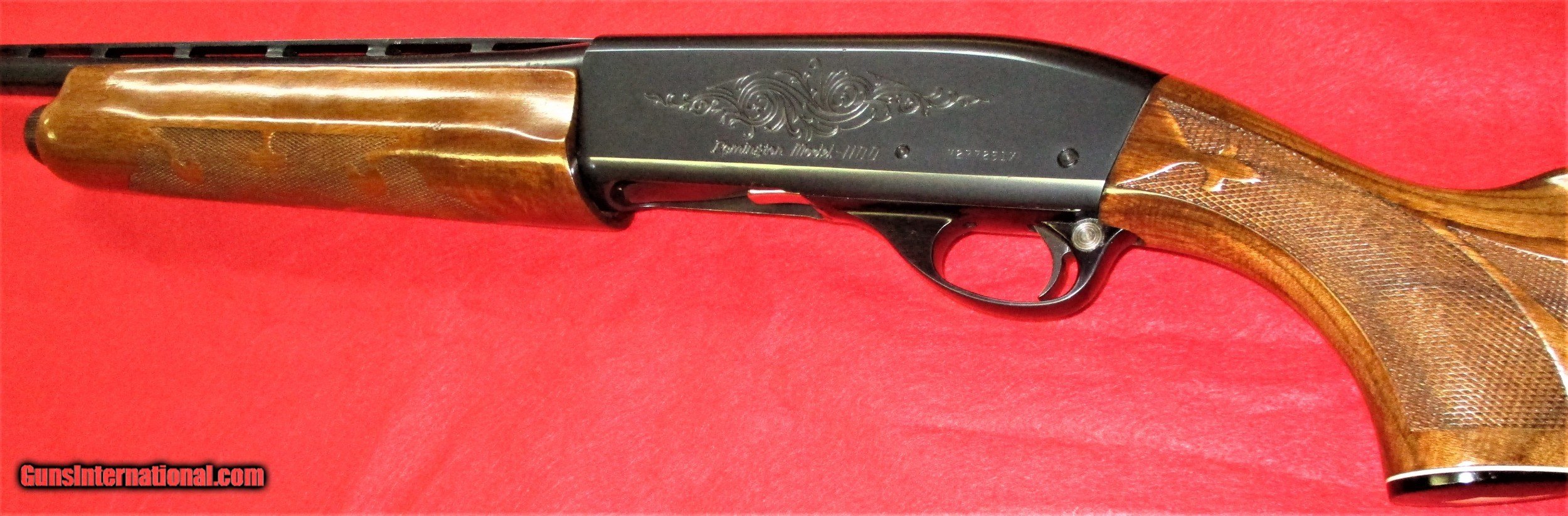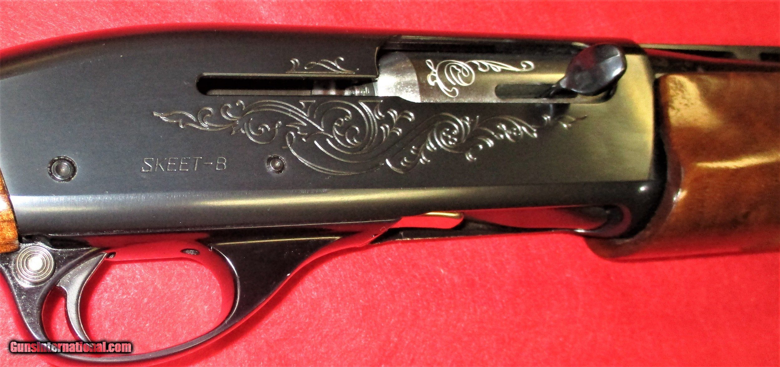 Description: This is a Super Nice Remington Model 1100 Skeet-B 20 ga. Shotgun. The barrel is a 25" VR with double bead sighting marked Skeet. The chamber is 23/4". The blue is rated at 98% with a few minor marks on the receiver top and a mark on the bottom of the barrel between the muzzle and forend.The wood is also rated at 98% with a few pin poing dings in the wood you really have to look for. The grain in the wood is very nice with Fleur-Di-Li press checkering pattern. The grip cap has the white diamond with a plastic Remington logo butt plate.The bore is shiny and clean. The action is tight and all appears to function perfectly. This Shotgun is in Excellent Plus condition rated 98%. You will not be disappointed with this Shotgun ! A 3-Day Inspection applies from the time the gun is delivered to your Dealer. I will ship to a FFL only within the Continental US including AK and HI which require extra postage as does CA otherwise shipping is $35.00. Email your questions or feel free to give me a call. I am a storefront FFL in business for over 15 years. Thank you, Glenn SOLD Manufacturer: Remington Model: 1100 Skeet-B Serial Number: M277251X Chambers: 23/4 Condition: Exc Metal Condition: Exc Wood Condition: Exc Bore Condition: Exc Barrels: 25 Barrel Type: VR Gauge Info: 20 Butt Pad: Plastic- Remington Chokes: Skeet |