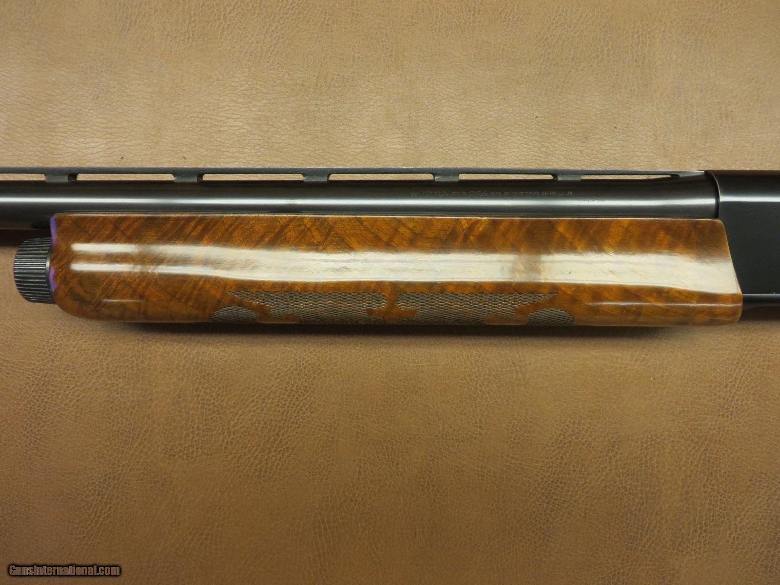 Description: 12 ga. 2 3/4 inch has 30 inch Modified Trap Choke vent rib barrel. Engraved receiver marked Trap on right side. Highly figured high gloss checkered walnut Monte Carlo stock has pistol grip cap and Pachmayr recoil pad with 14 1/4 inch length of pull. All near 95% condition with blue wear on right side of action from shell catcher. SOLD |