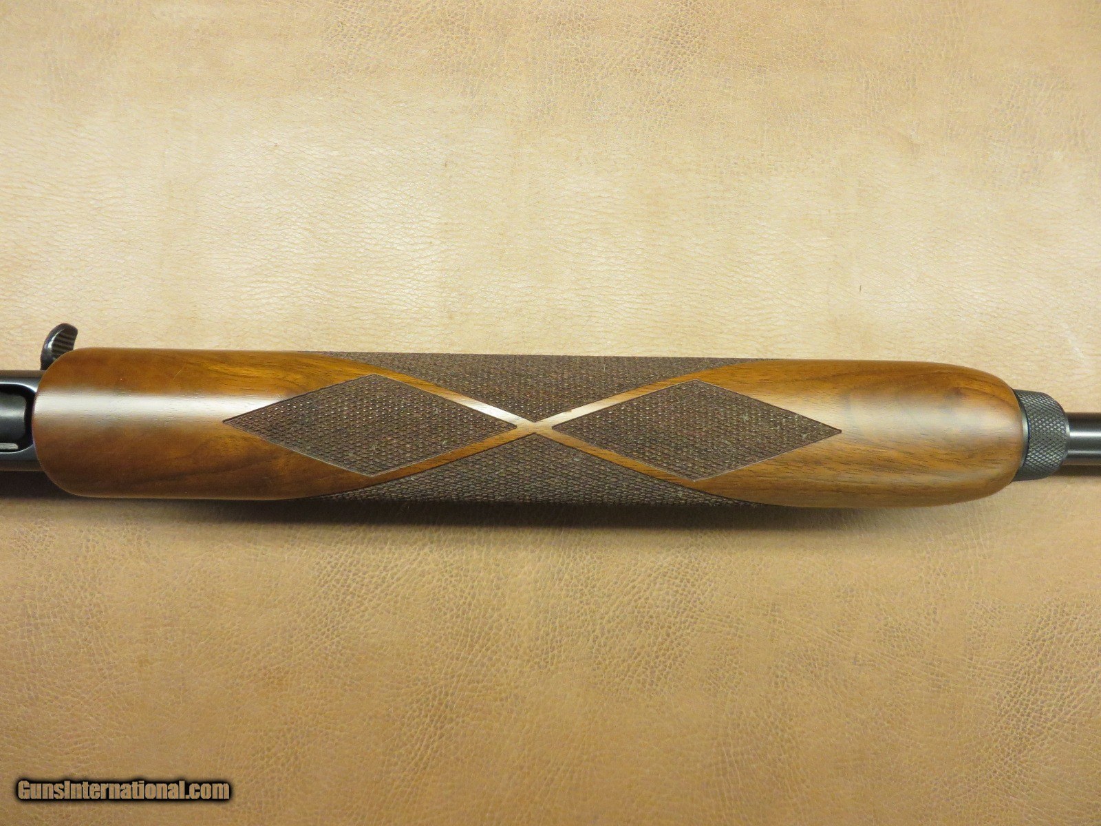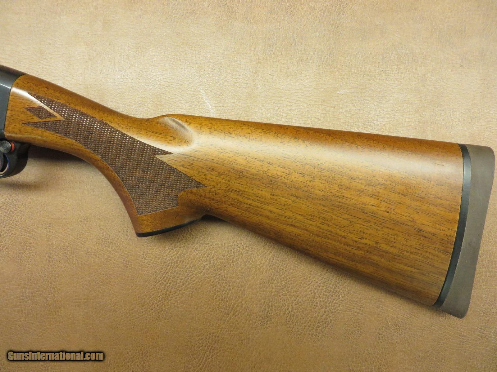 Description: 20 ga. 2 3/4 inch has 21 inch Remchoke vent rib barrel. Satin finish checkered walnut has pistol grip cap and original rubber butt pad with 13 inch length of pull. Blue is 98% and the wood is 99%. SOLD |