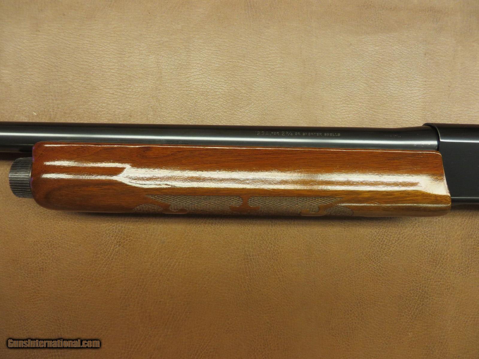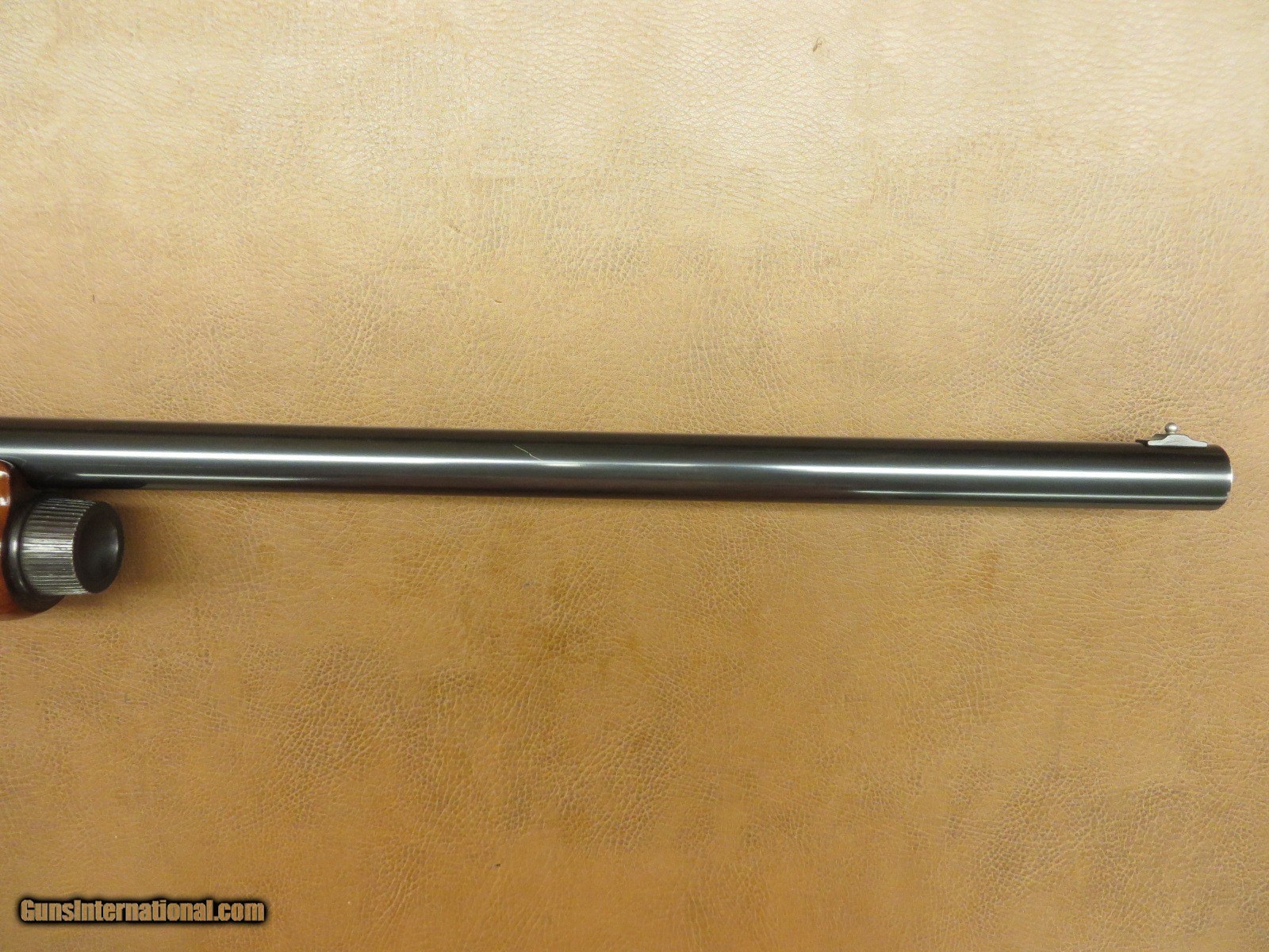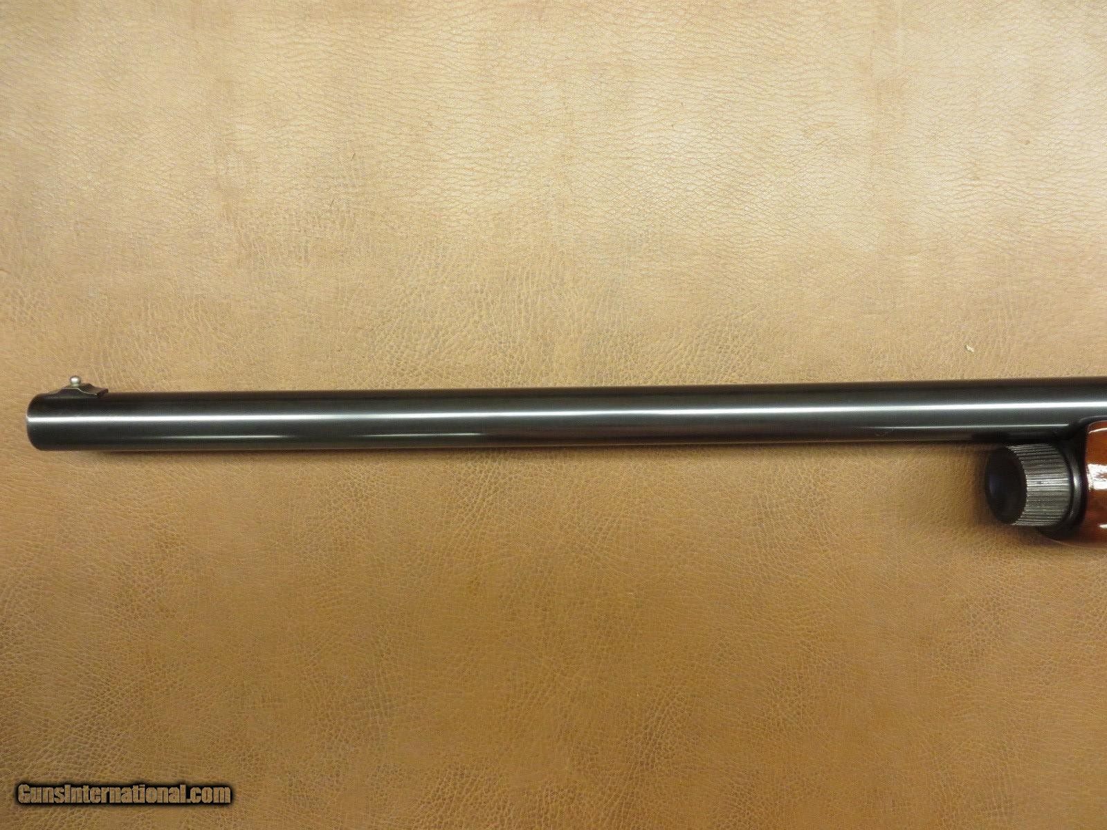 Description: 12 ga. 2 3/4 inch has 26 inch improved cylinder choke plain barrel. Engraved receiver serial number 497xxxV. High gloss checkered walnut has pistol grip cap and original butt plate. Hairline crack in stock on left side where it meets the receiver. Blue and wood finish are both 95%+. SOLD |